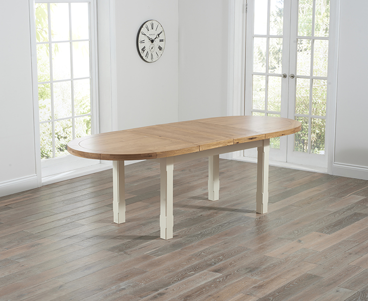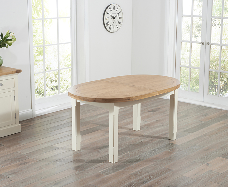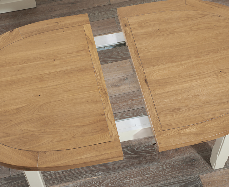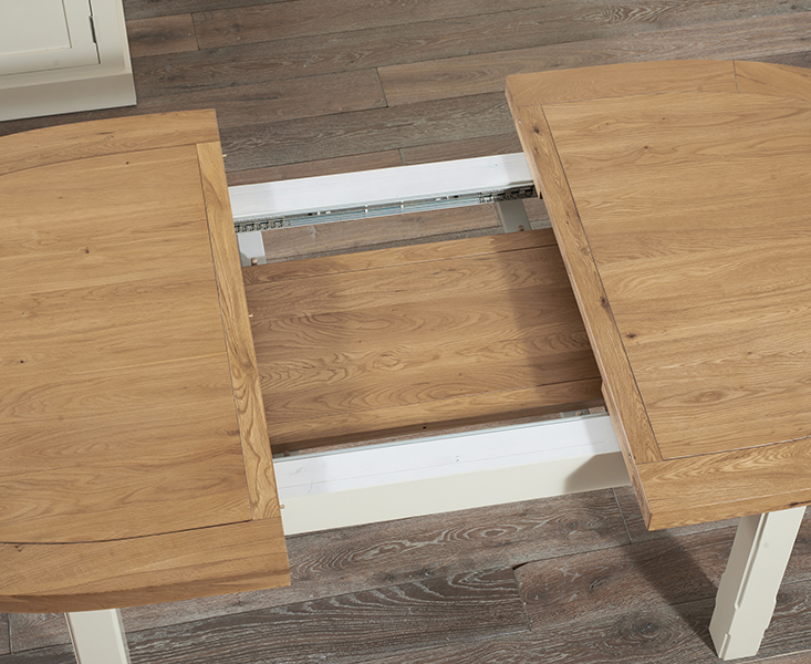 Стильный массивный и невысокий стол обеденный Orvietto «ST 115» с механизмом раскладки выполнен со вставкой из натурального массива дуба. Массивная овальная столешница размещается на прямоугольном основании в белой эмали. Крупные ножки выполнены с применением фрезеровки, которая придает столу изысканный стиль.