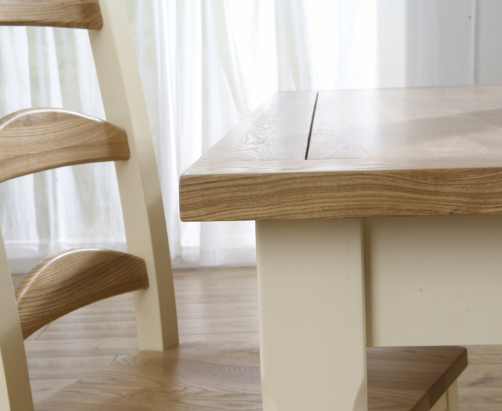 Компактный квадратный стол. Скромный декор фрезеровкой, притягательное сочетание натуральной текстуры дуба и белой эмалировки, покрывающей массивные ножки и царги. Минималистичная композиция естесственных цветов прекрасно впишется в интерьер, оформленный в классическом, скандинавском стиле, Лофт, Прованс и Ретро.