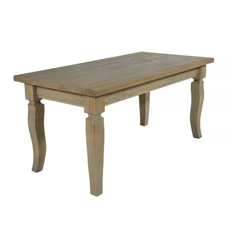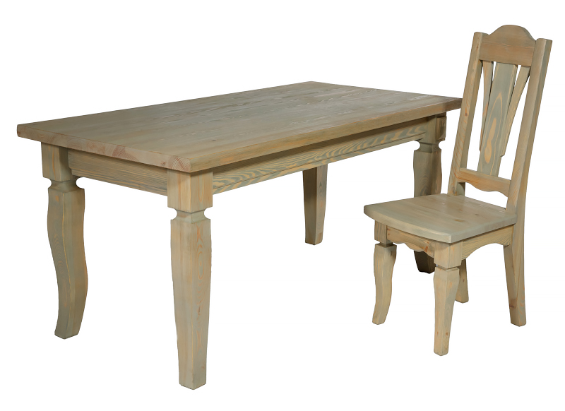 Обеденный стол выполнен из натурального массива. Прямоугольная столешница надежно крепится к гнутым ножкам, которые также изготовлены из массива. Натуральный цвет древесины отлично проявляется за счет отделки.
