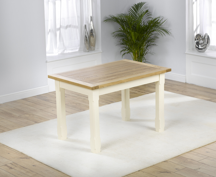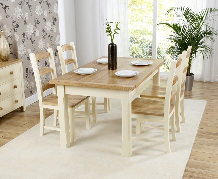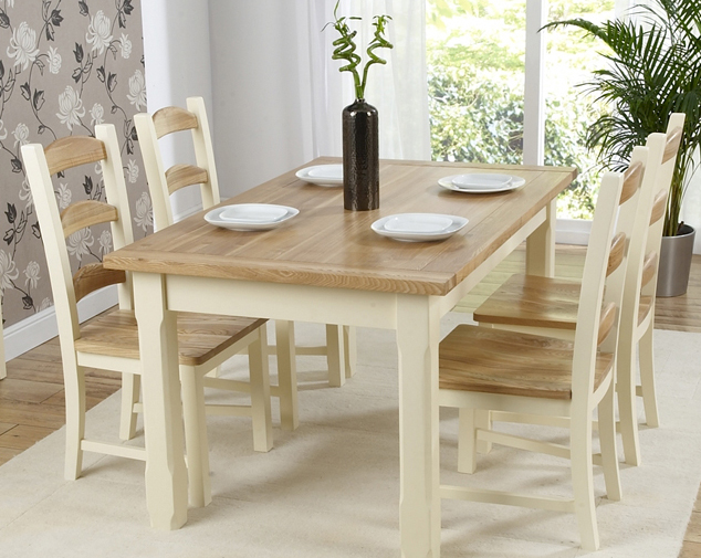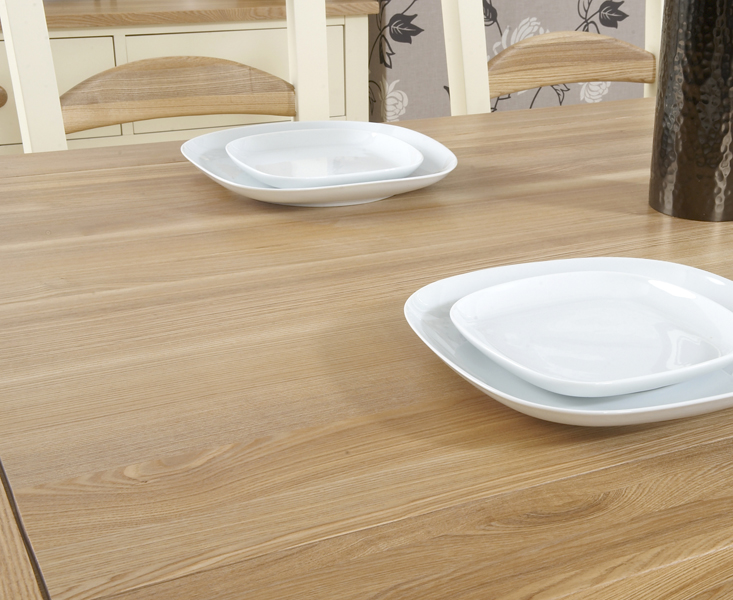 Двухцветная модель со скромным декором в виде фрезеровки поверхности стола и ножек. Каркас покрыт кремовой эмалью в контраст лакированной столешнице. Стол, обладающий отличной вместительностью, будет превосходно сочетаться с другими предметами мебели гостиной или столовой. А приятное сочетание светлых оттенков и натуральной древесной текстуры привнесут в дом дополнительный уют и нотку романтики.