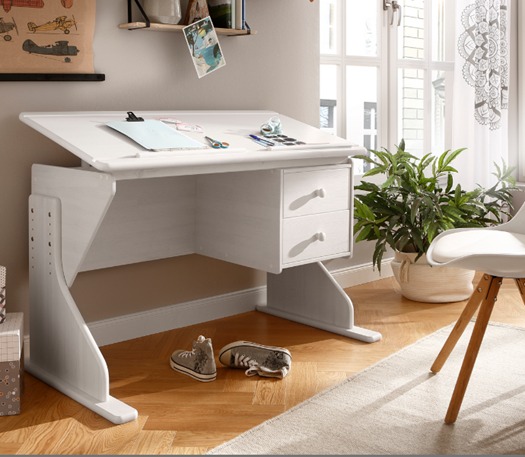 Парта оснащена механизмом регулировки высоты крышки и высоты опор.