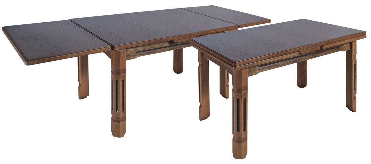 Прямоугольный обеденный стол со скругленными углами. Столешница изготавливается из шпона дуба либо шпона бука на выбор, основание из массива бука. По желанию заказчика столешница может быть декорирована рисунком, патированием, гравировкой или эффектом старения.