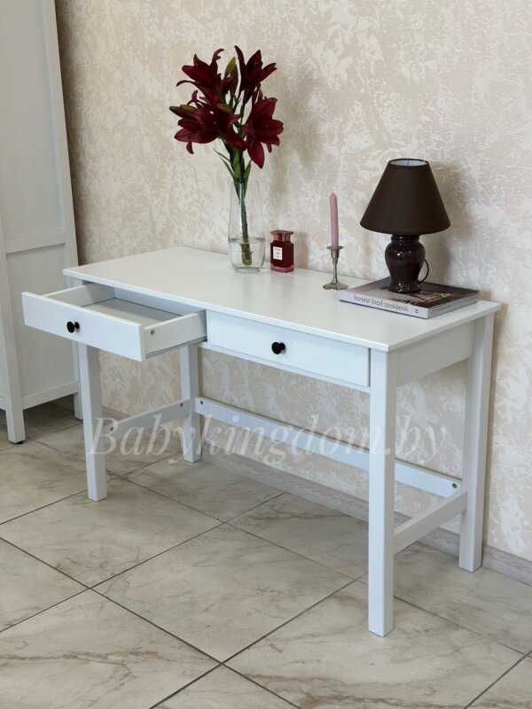 Стол письменный 2-х тумбовый из массив сосны «Рауна 08» (Белый воск)