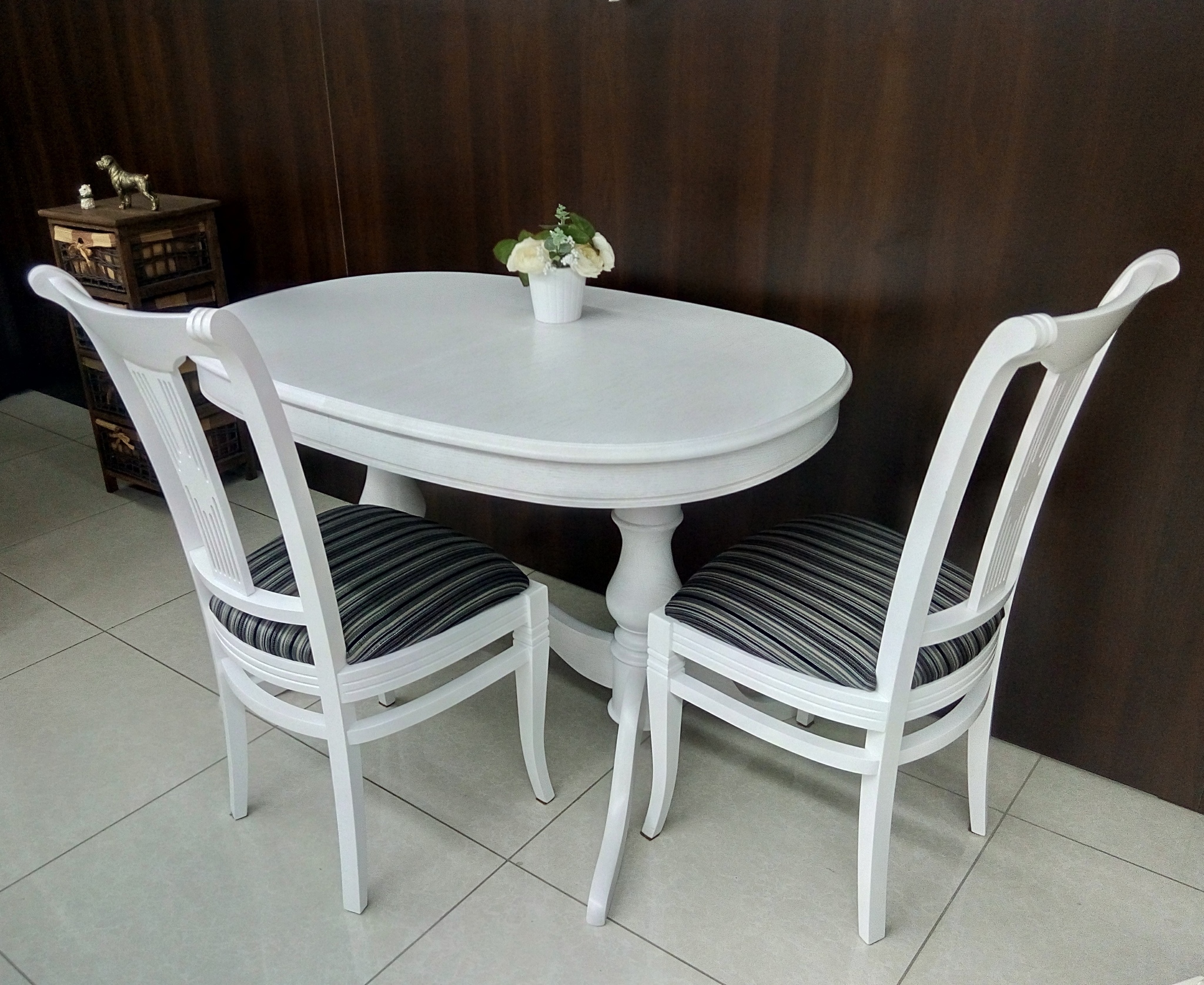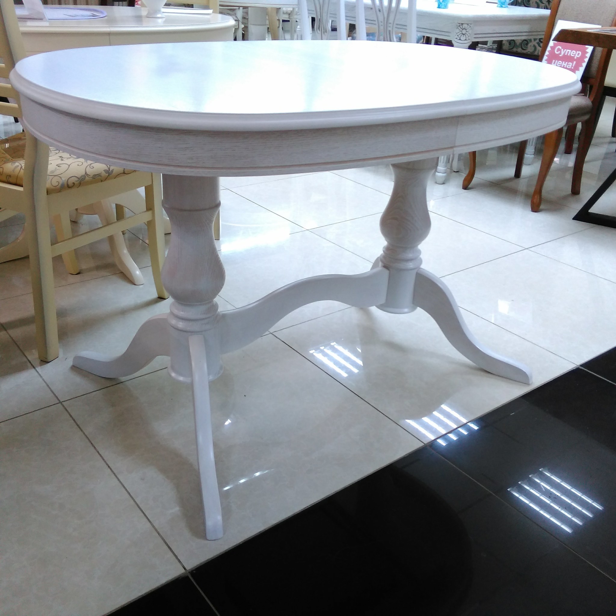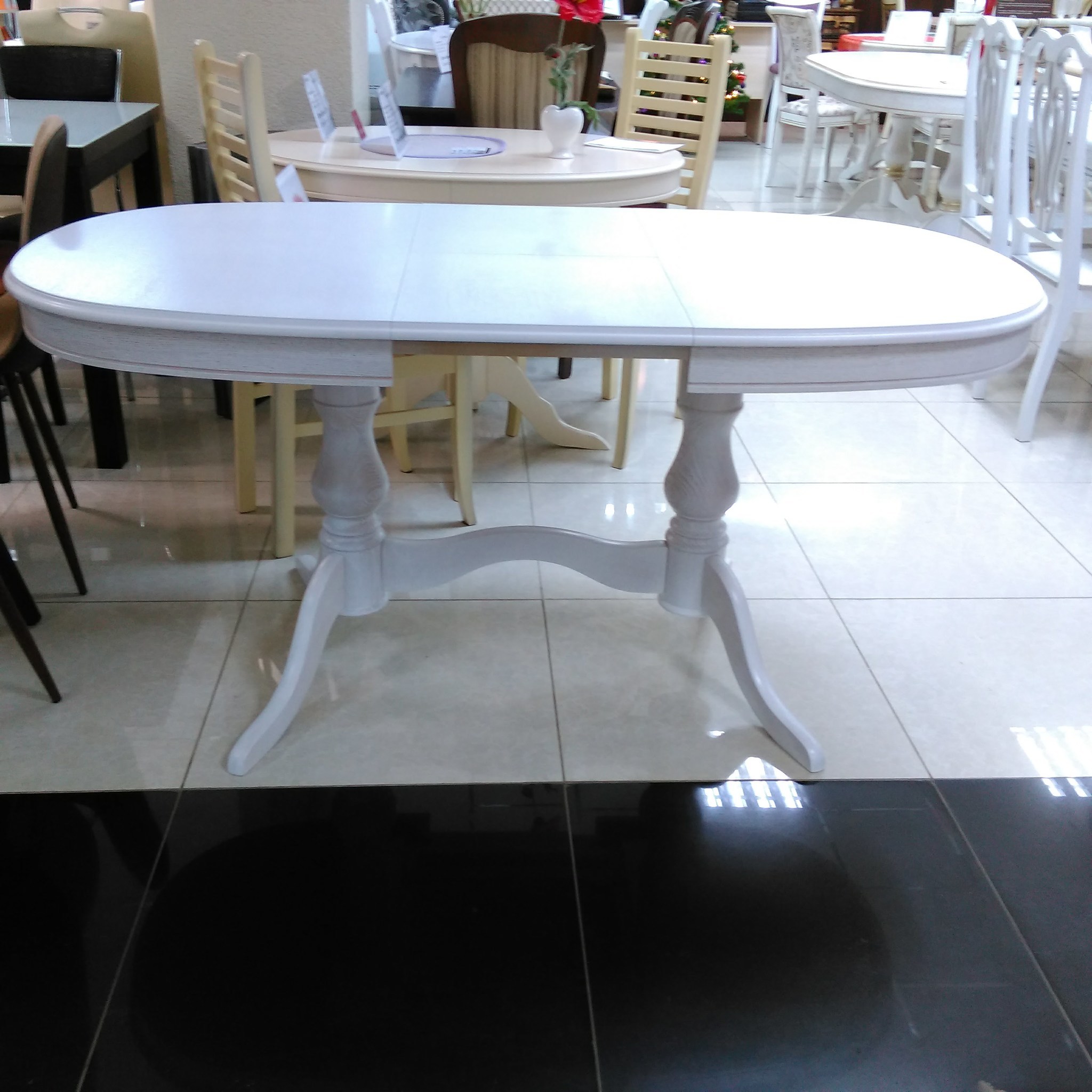 Овальный обеденый стол с синхронно-раздвижным механизмом раскладывания. Благодаря универсальному белому цвету и классическому дизайну данная модель удачно впишется практически в любой интерьер. Столешница выполнена из шпона дуба.