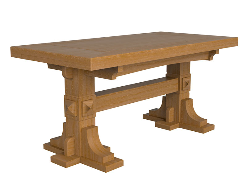 Деревянный ЦЕЛЬНО и ШИРОКО ламельный стол из дуба с ЖИВЫМ КРАЕМ на металлическом подстолье серии V