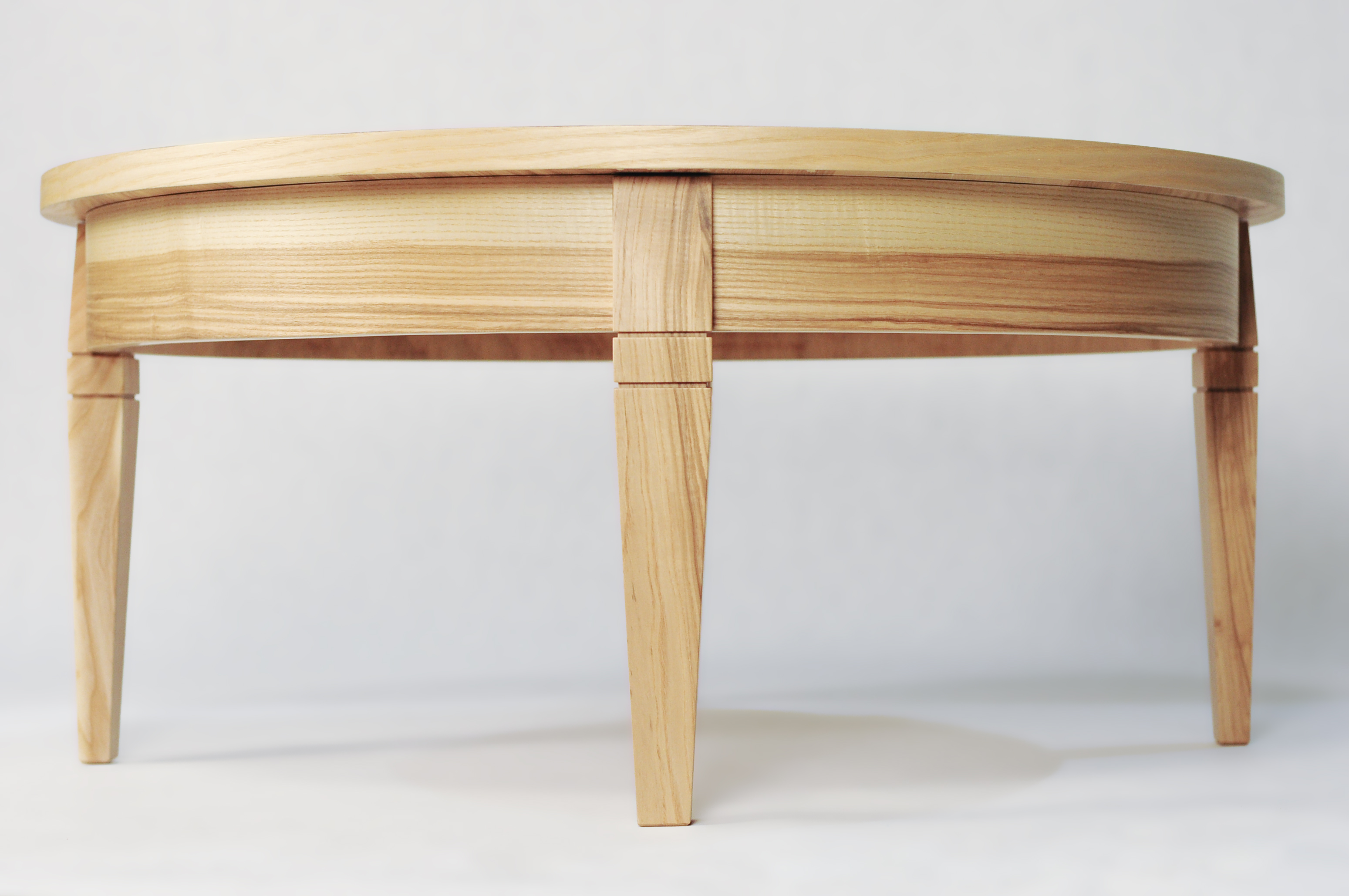 Комфортный кофейный столик может стать незаменимым предметом интерьера комнаты. Большая кругая столешница позволит использовать столик также в качестве журнального столика, на котором всегда найдется место для книги или журналов. Столик выполнен в лаконичном светлом цвете и сложной древесной текстуре, которую подчеркивает нанесенный слой матового лака.