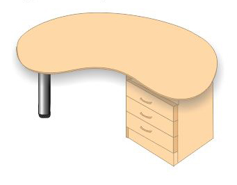 Прямой двухместный стол с тумбой и выдвижными ящиками под столешницей.