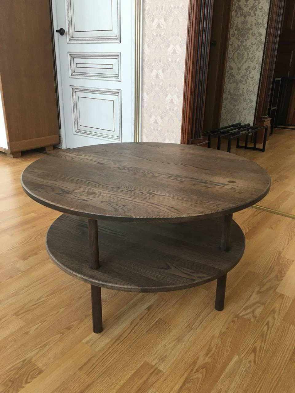 Приставной журнальный столик в стиле лофт. Изготовлен из массива дуба и высококачественного метала.