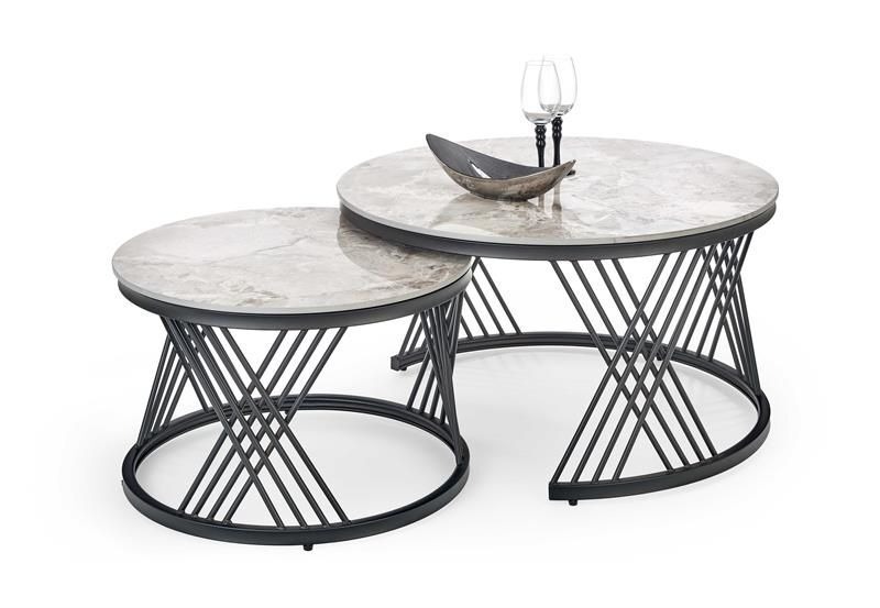 Комплект «HALMAR FLAMINGO» (2 стола журнальных) серый мрамор/черный, 60/40 и 80/46