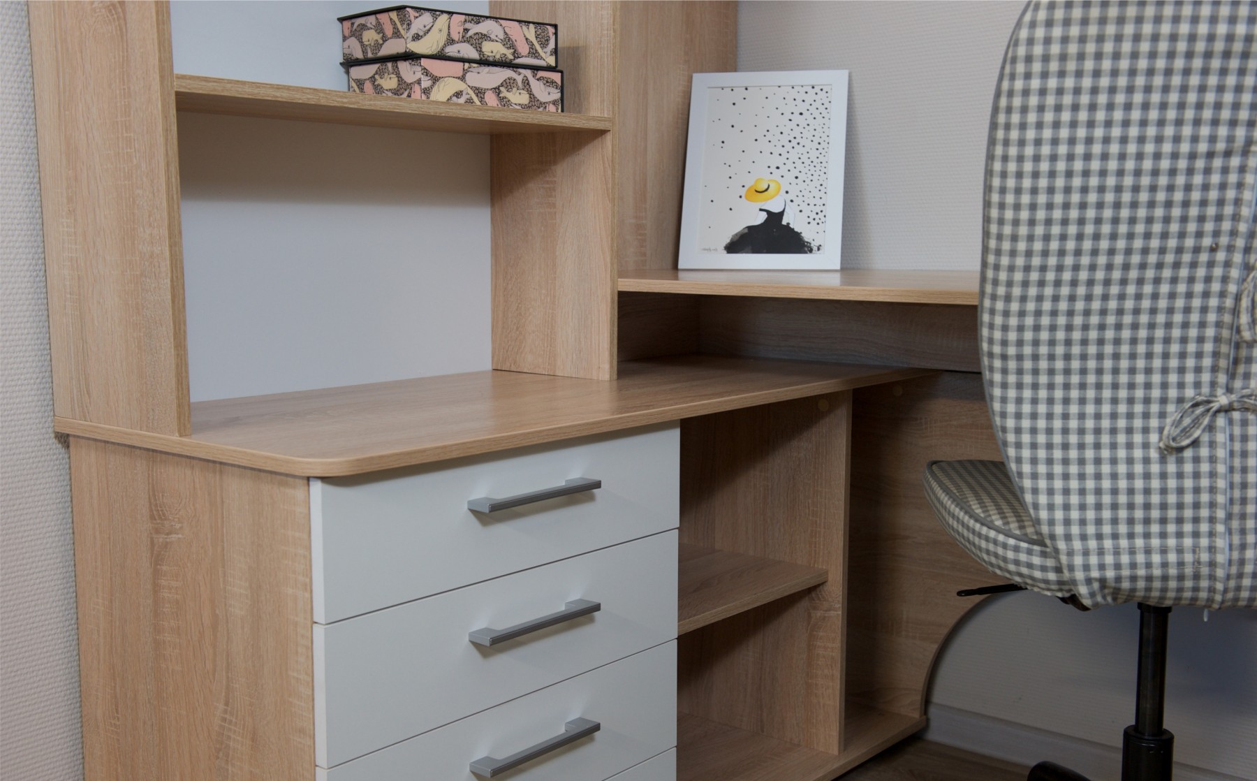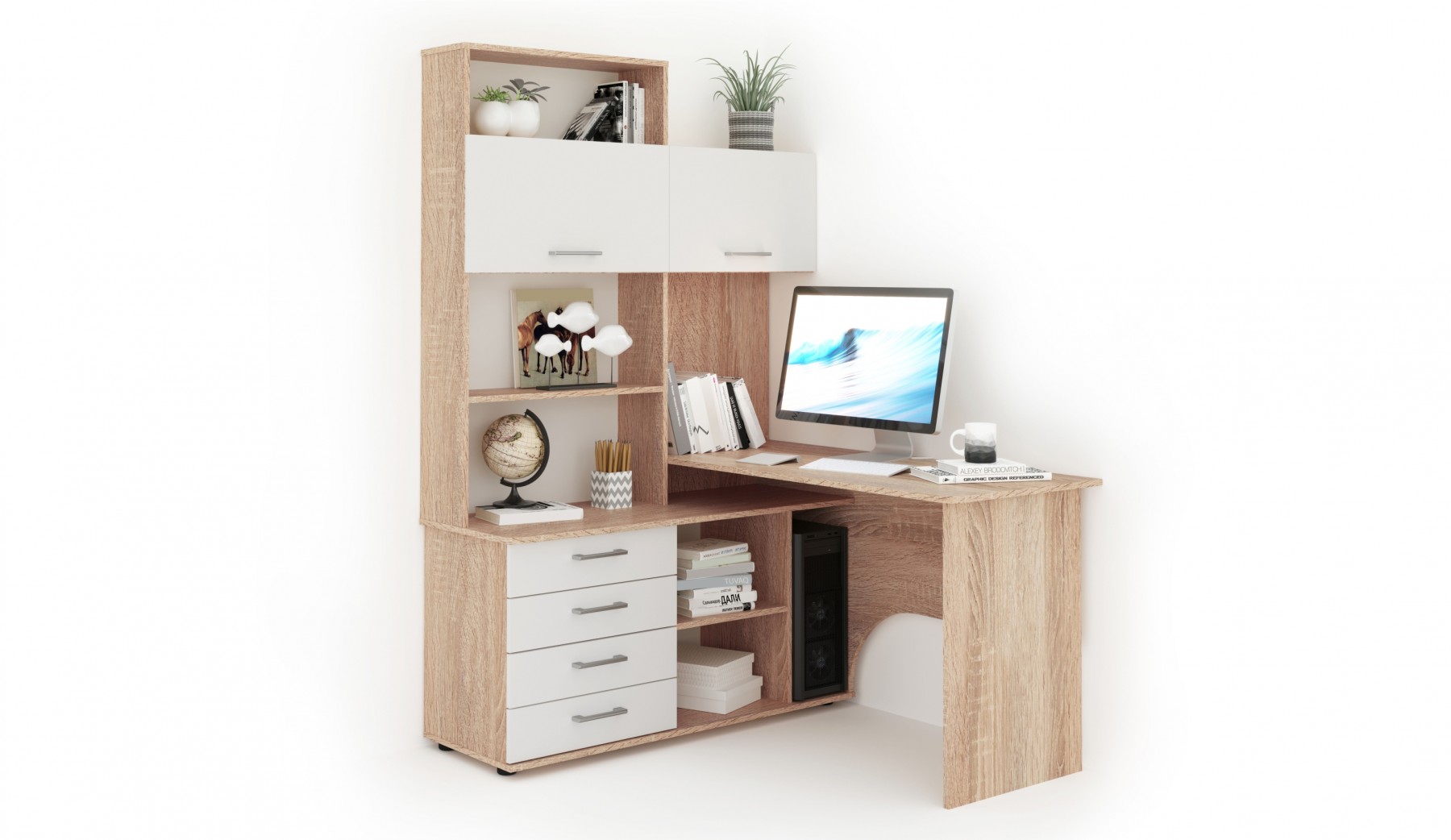 Компьютерный стол «Гарвард» угловой с надставкой ЛВ Дуб сонома/белый
