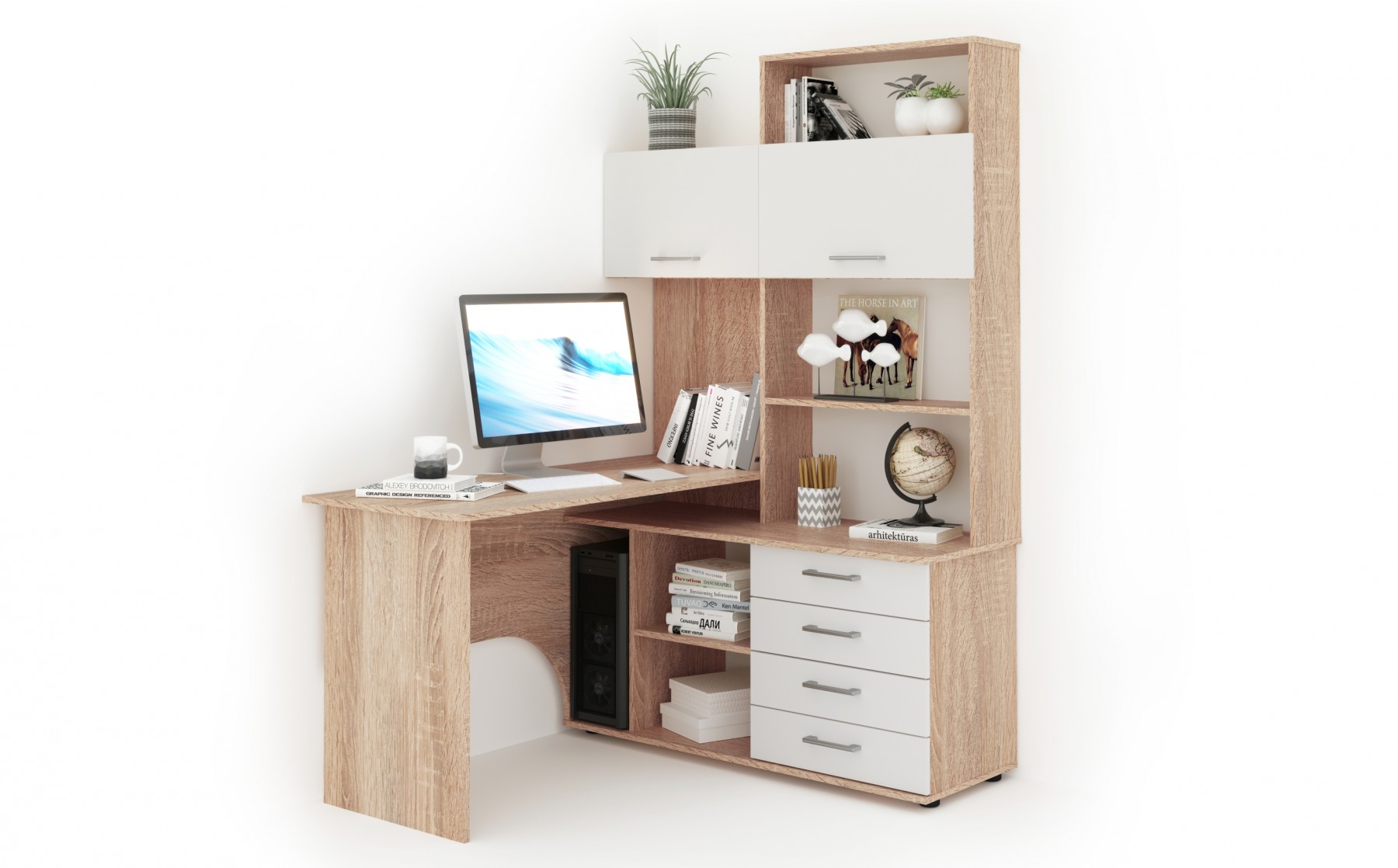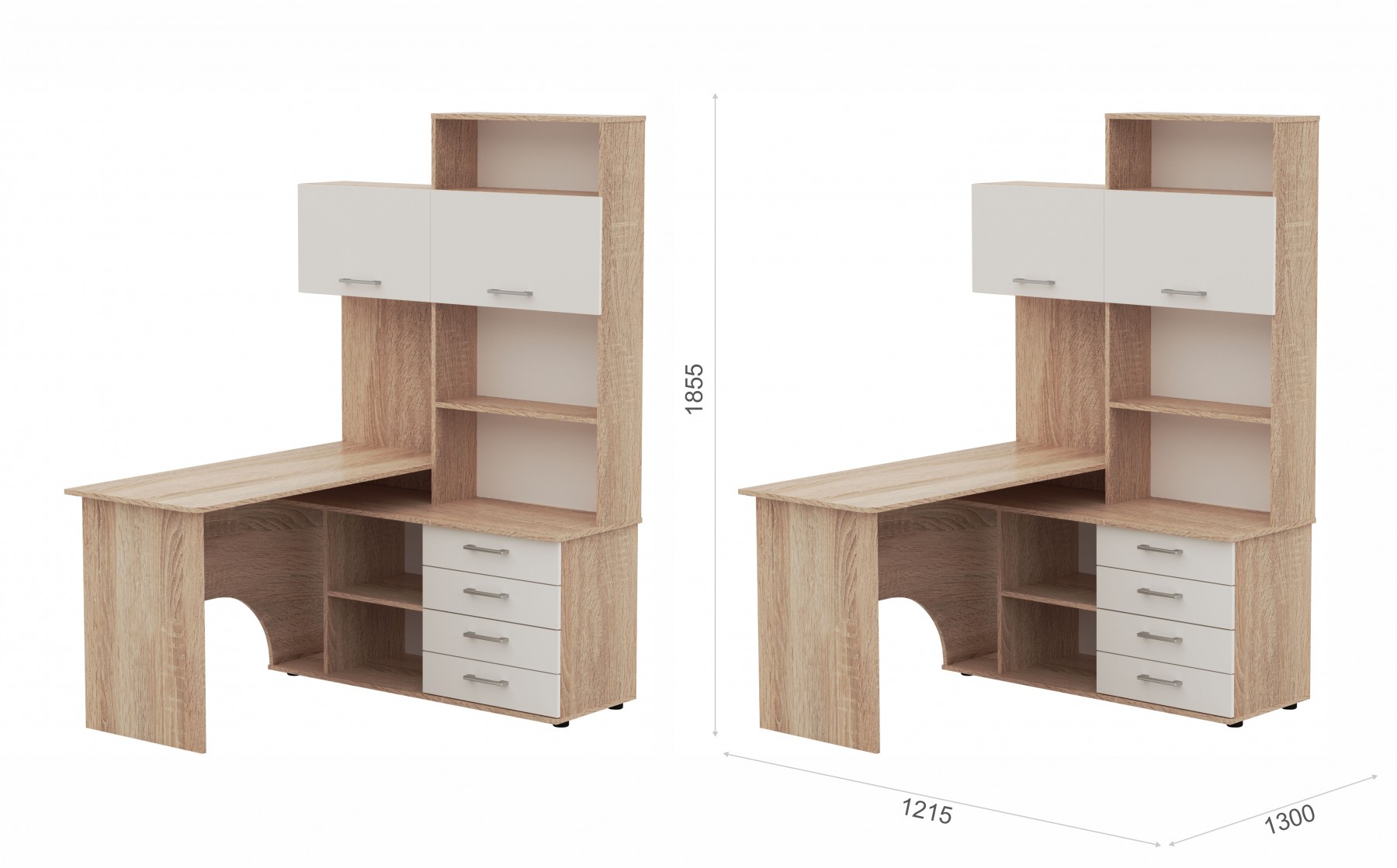 Компьютерный стол «Гарвард» угловой с надставкой ПР Дуб сонома/белый