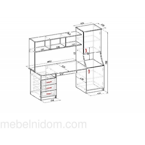 код 104721Функциональный стол с выдвижными ящиками, полками и шкафчиками.