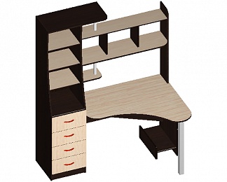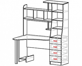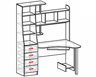 Две столешницы на разных уровнях. Выдвижные ящики. Угловая конструкция.