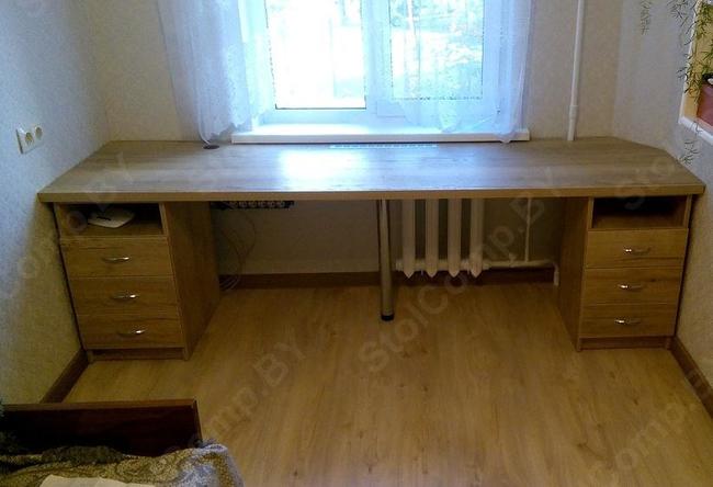 код 91438Встраиваемый стол для детской с двухместной широкой столешницей и двумя тумбочками.