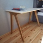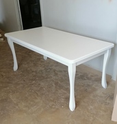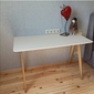 Столешница изготовлена из МДФ и окрашена в белый цвет, ноги - натуральный дуб.