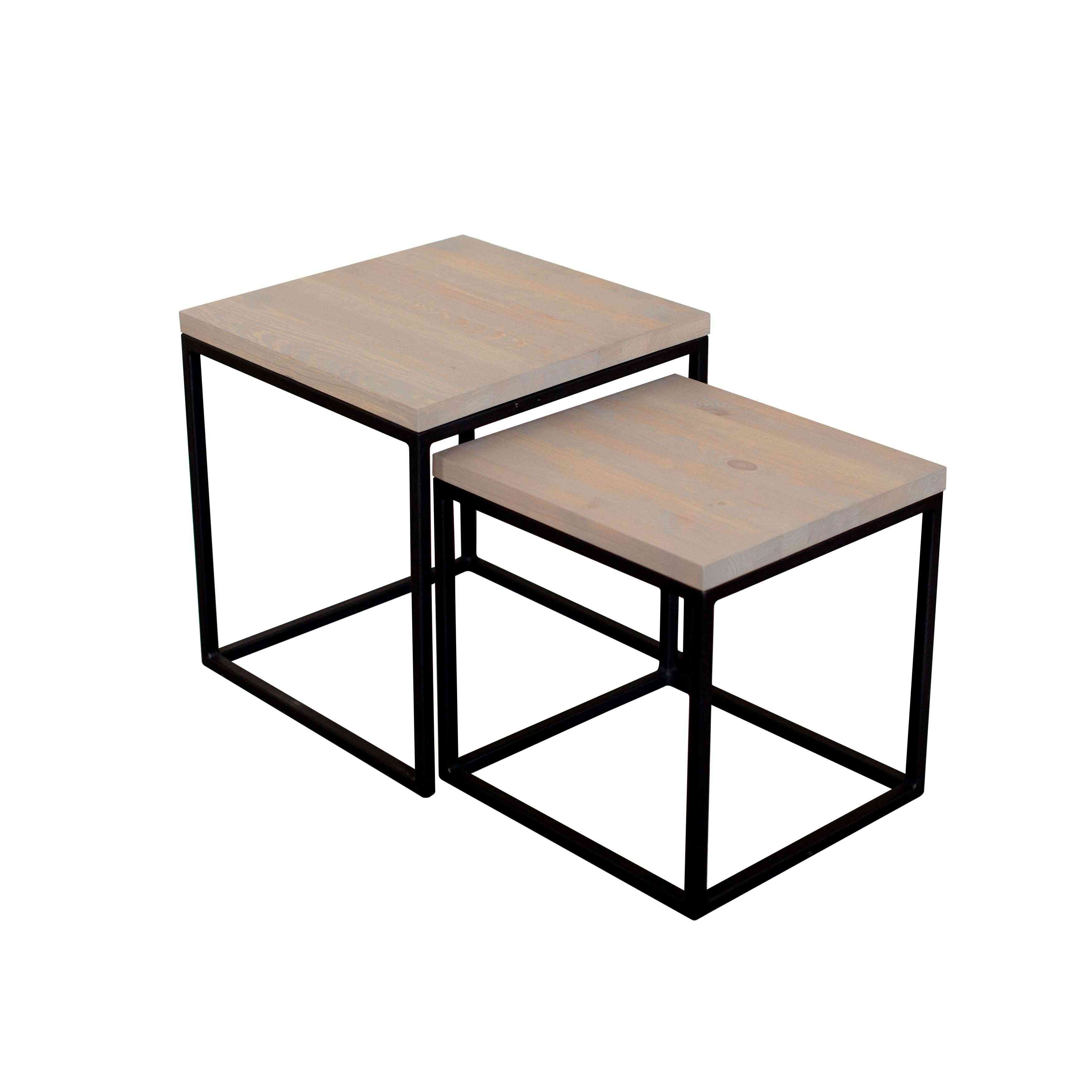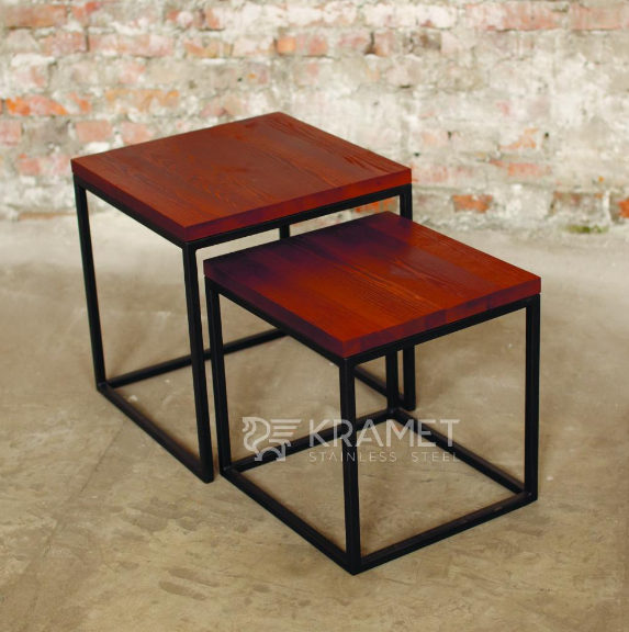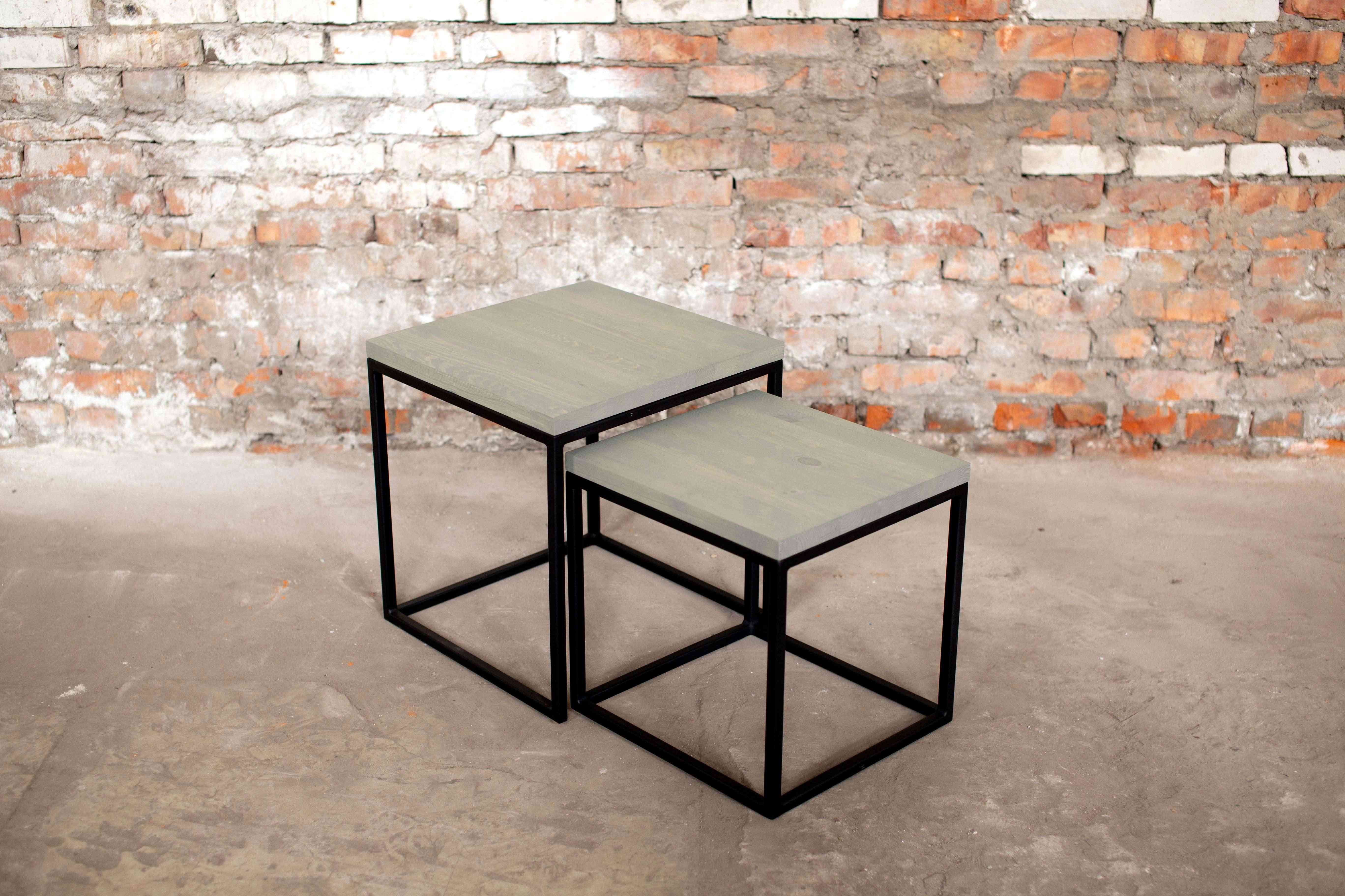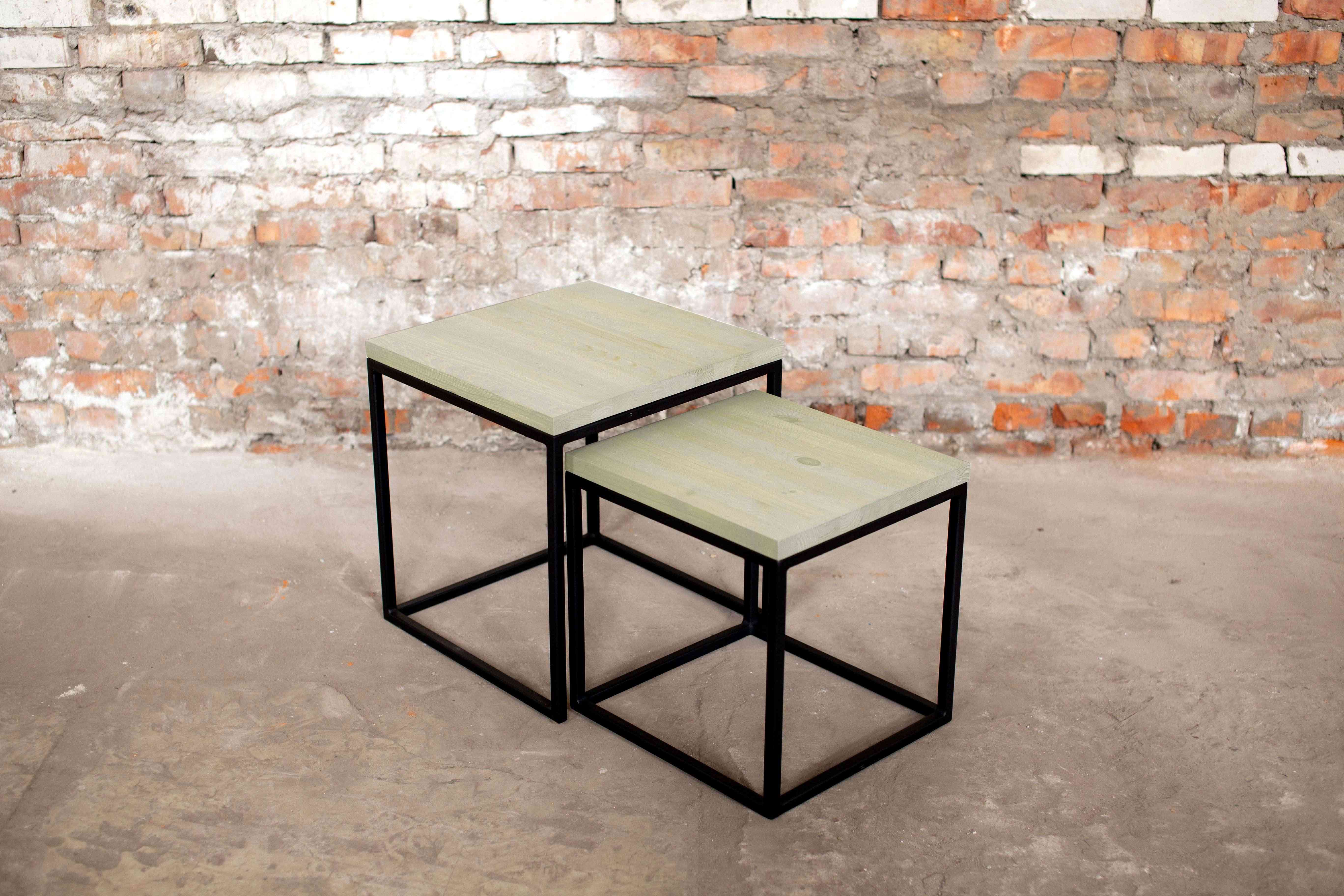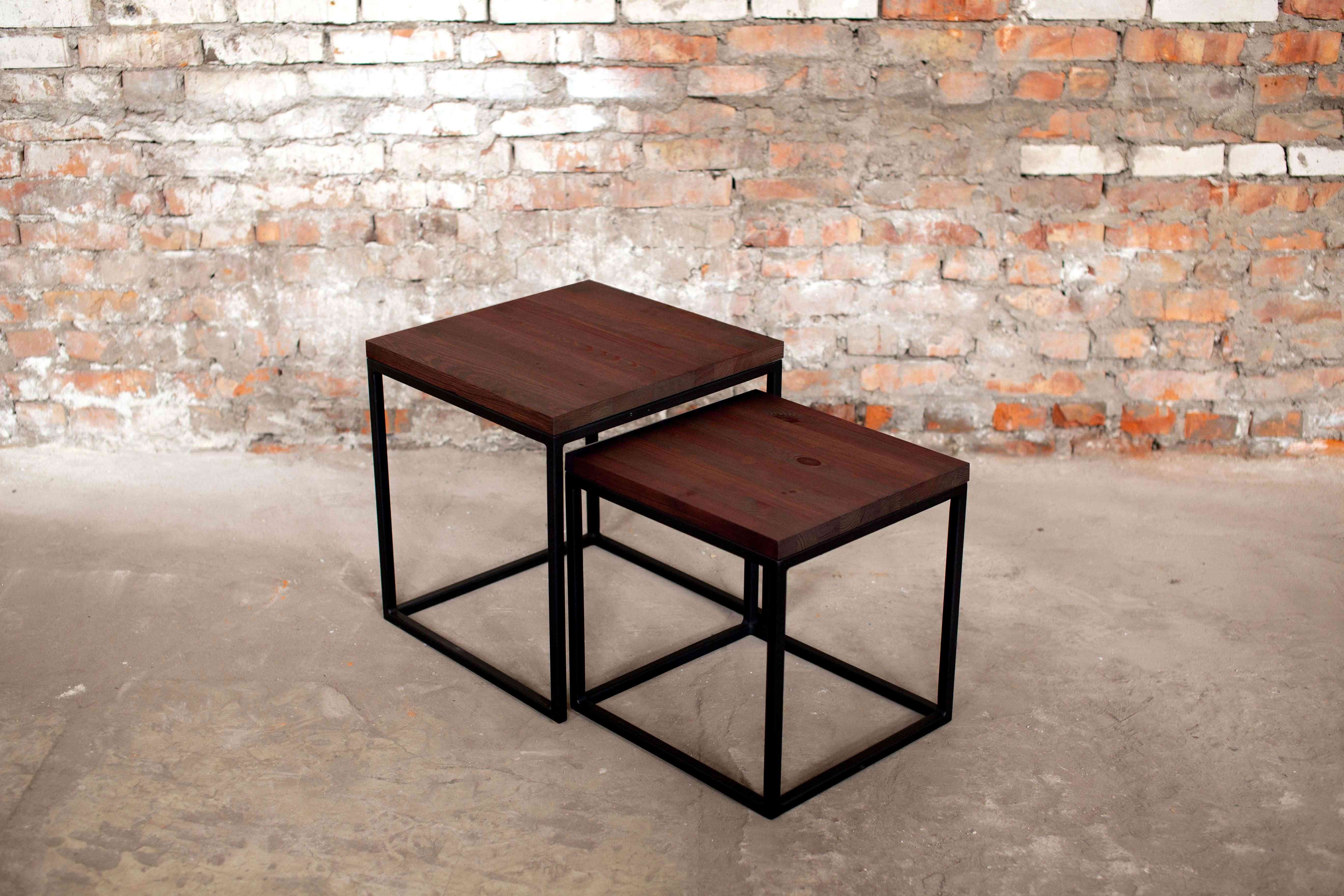 Приставной журнальный столик в стиле лофт. Изготовлен из массива дуба и металла.