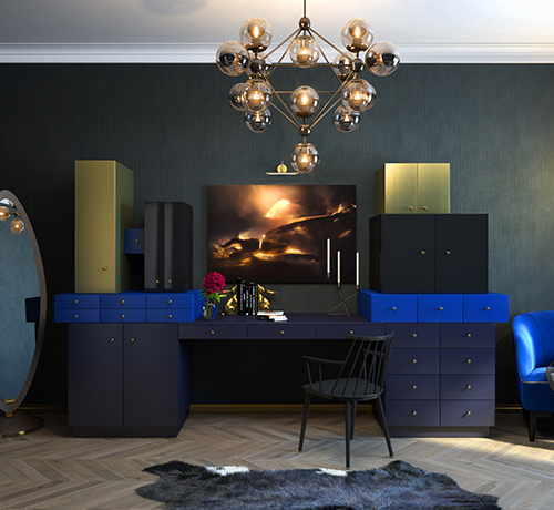 Оригинальный стол с обилием шуфлядок представлен с стильной дизайне и декорирован различными цветами, которые придают ему индивидуальность. Стол имеет множество вместительных модулей, в которые можно складывать необходимые предметы. Удобные круглые ручки позволят быстро и с комфортом открывать шуфлядки.