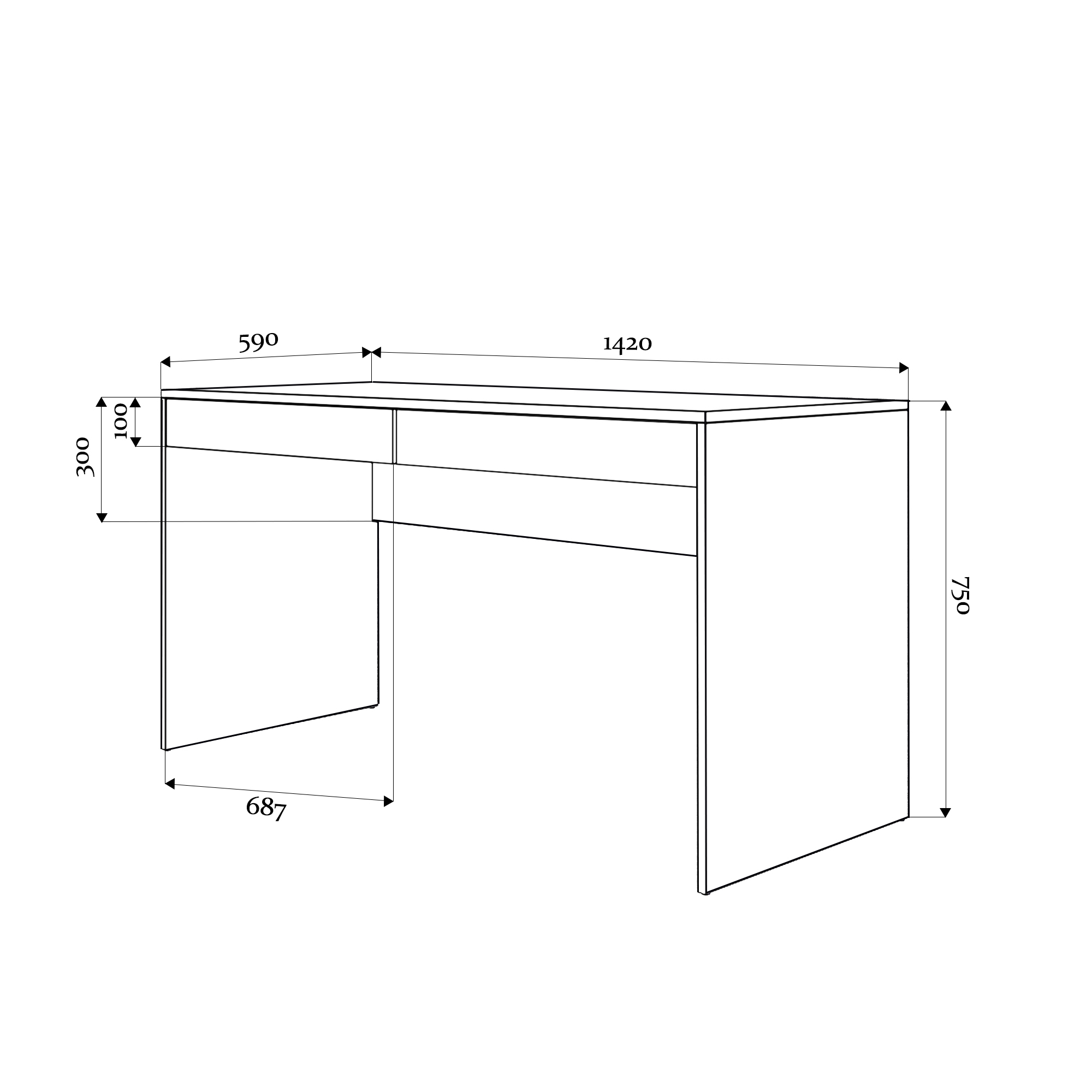 Стол письменный на П-обр. опорах 1400х700х750 мм