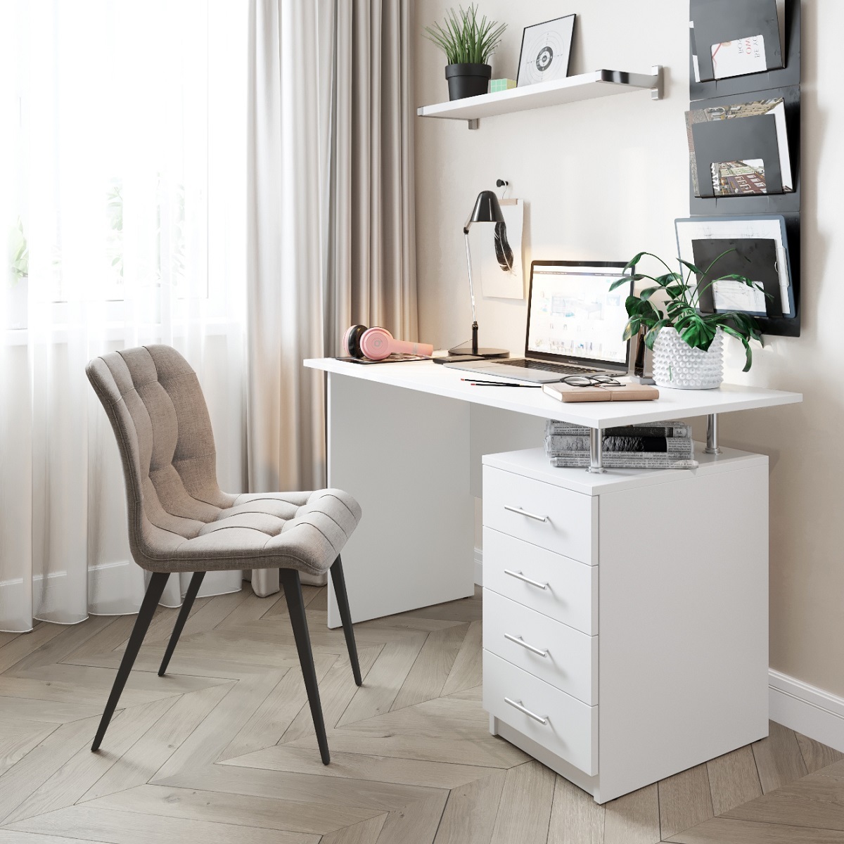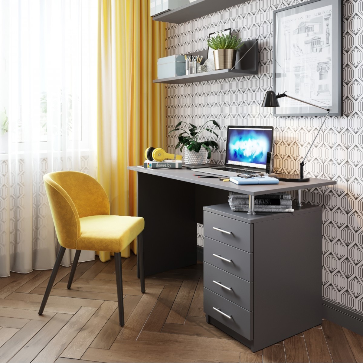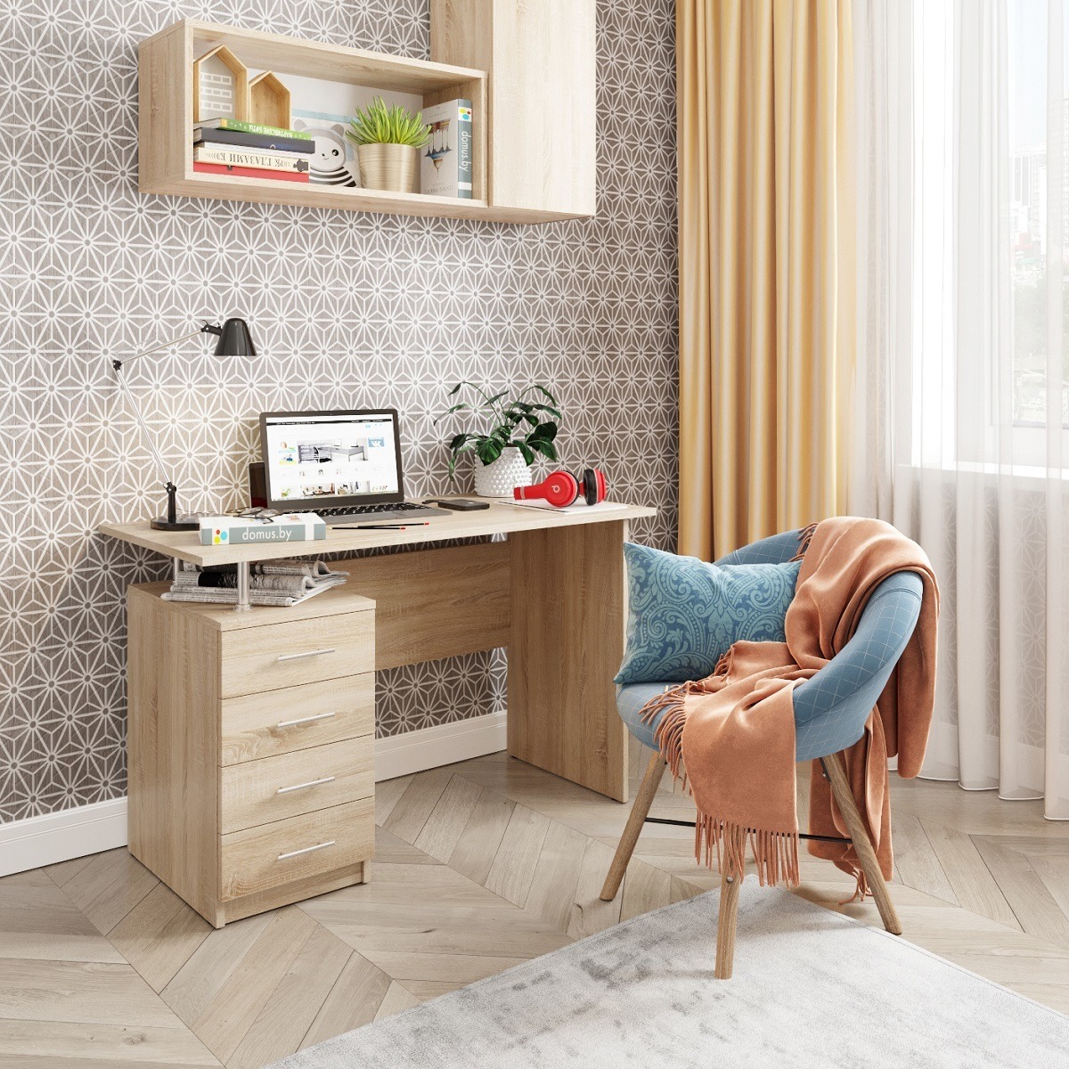 Стильный и удобный письменный стол ДОМУС СП005 прямоугольной формы с четырьмя выдвижными ящиками на шариковых направляющих и полкой. Вместительные ящики позволят хранить все необходимые для учебы и работы принадлежности под рукой. Расположение выдвижных ящиков возможно с левой или правой стороны на ваш выбор. Стол идеально впишется в любой интерьер и создаст удобное рабочее место.