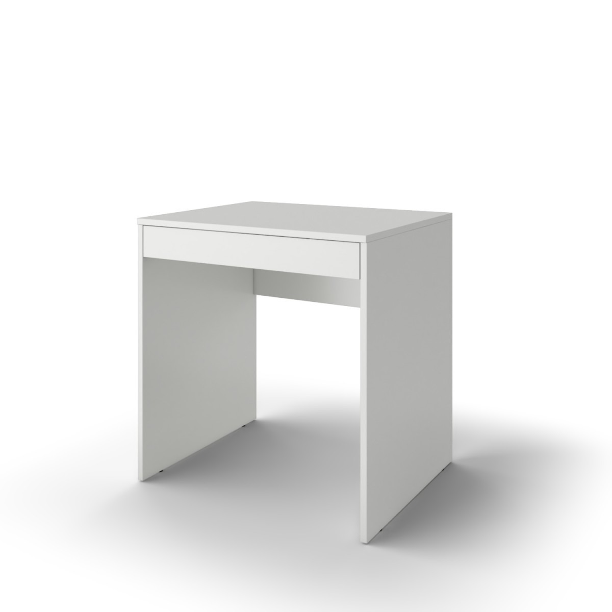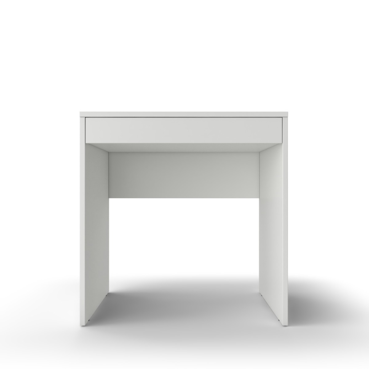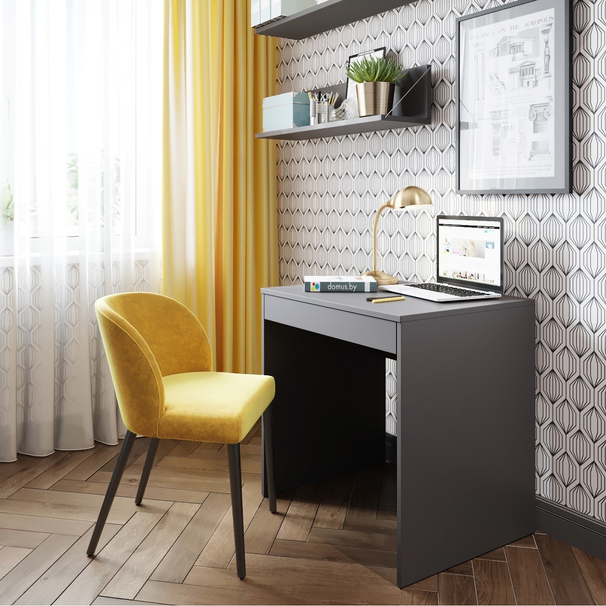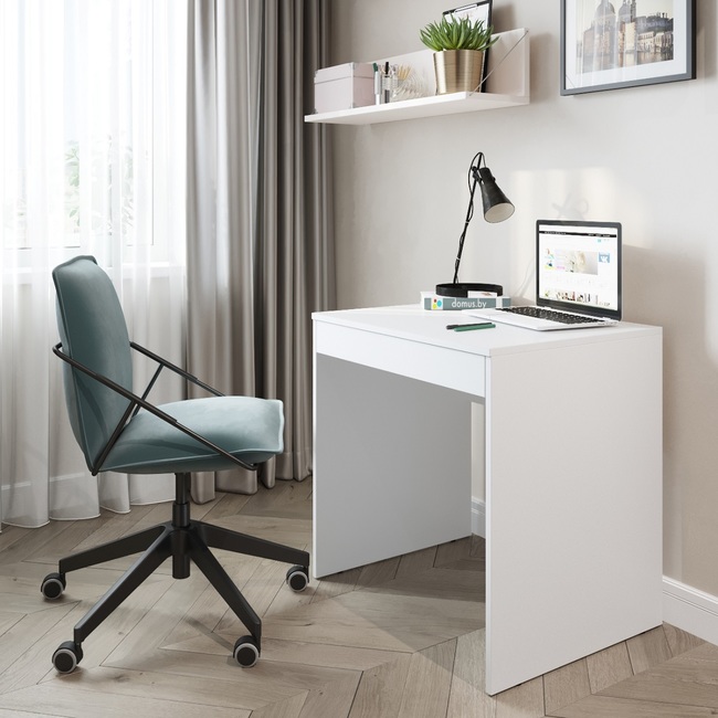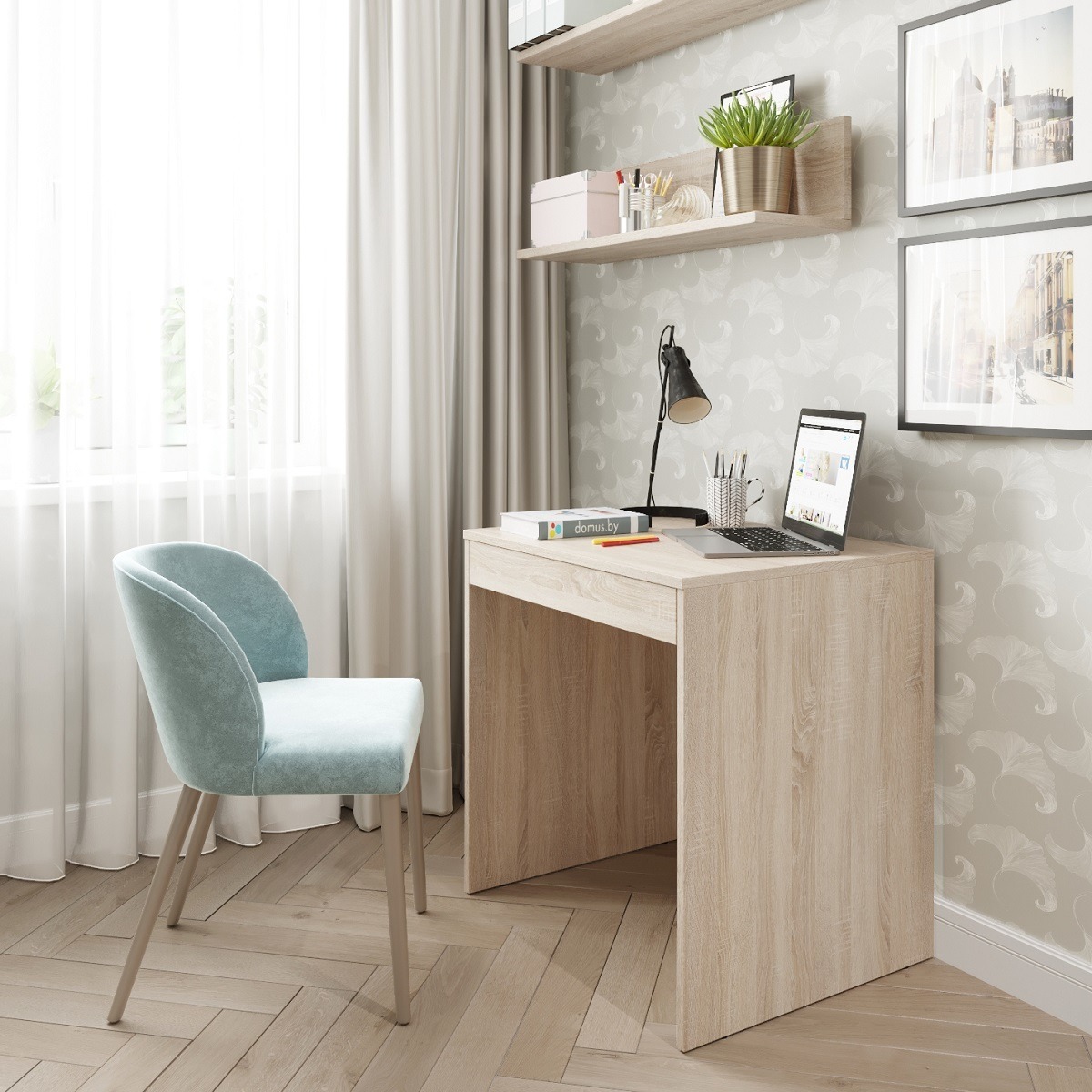 Лаконичный письменный стол ДОМУС СП008 с выдвижным ящиком на шариковых направляющих для хранения отлично впишется в интерьер гостиной, детской или спальни. Стол компактный и стильный по дизайну, поможет организовать рабочее место даже в небольшом помещении. Можно использовать как туалетный столик.