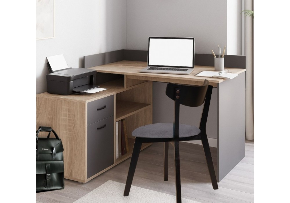 Этот универсальный стол легко адаптируется под любые потребности — его можно собирать как с левой, так и с правой стороны. Он оснащен просторным ящиком, распашной дверцей и открытыми полками для удобного хранения.