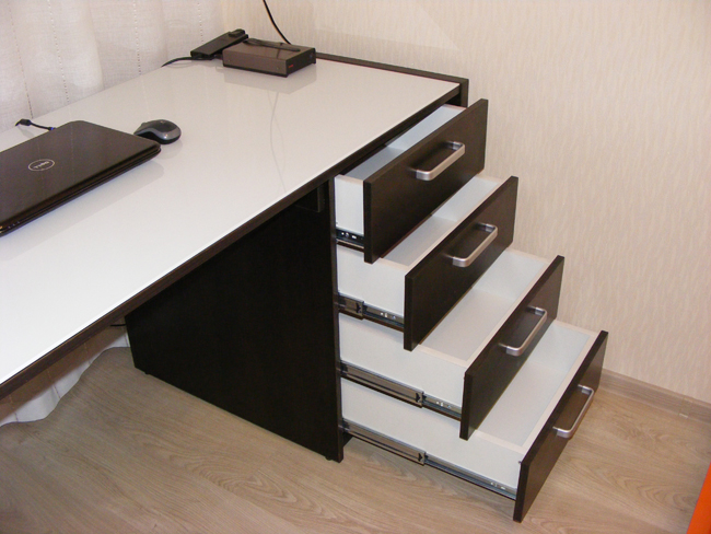 код 52344Каркас цвета венге. Четыре выдвижных ящика. Белая гладкая столешница.