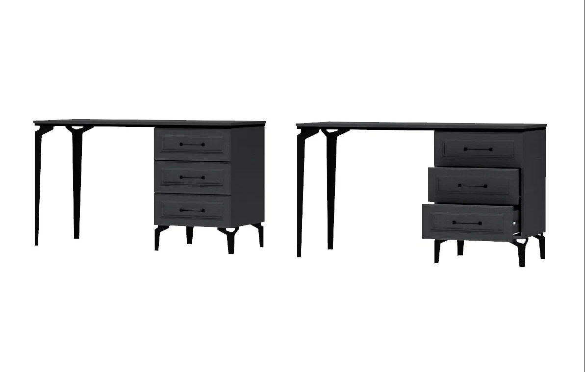 Прямой рабочий стол с одной тумбой на три выдвижных ящика. Столешница 110см.