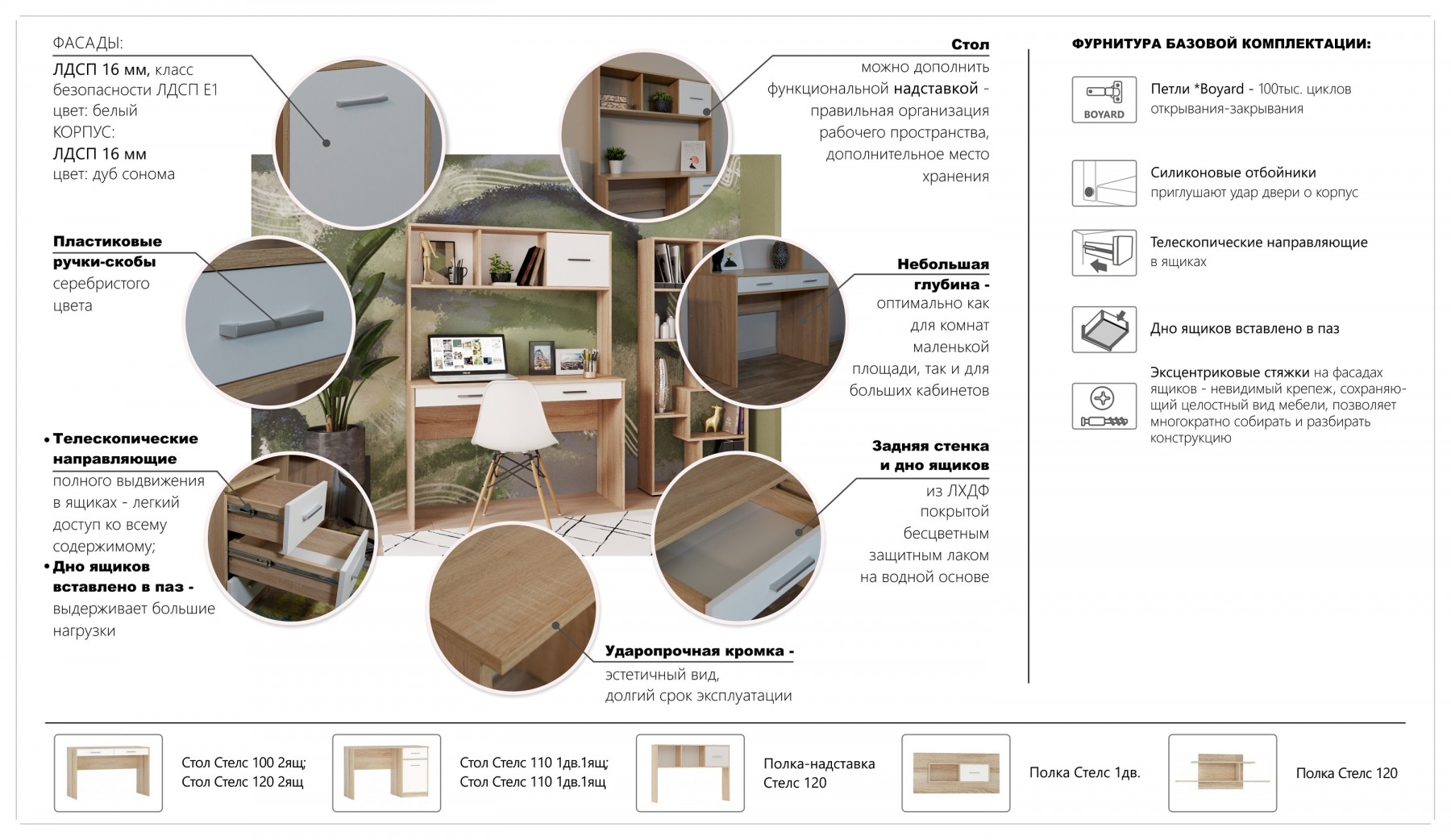 Стол письменный «САГА» 120х56см, белый/ясень (2.08.06.160.14 RU)