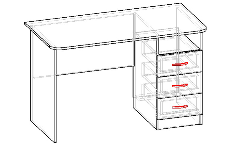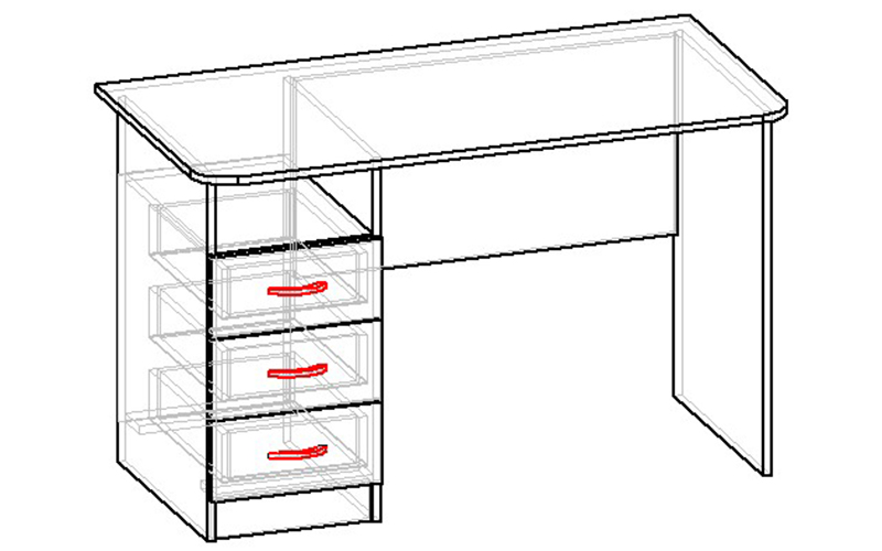 Классический компьютерный стол «Альянс» станет Вашим любимым местом работы. Под широкой столешницей стола разместилась тумбочка с тремя выдвижными ящиками и открытой нишей. На широкой столешнице достаточно места для размещения монитора и канцелярских принадлежностей. Исполнение стола универсальное, то есть тумба может располагаться, как с левой, так и с правой стороны.