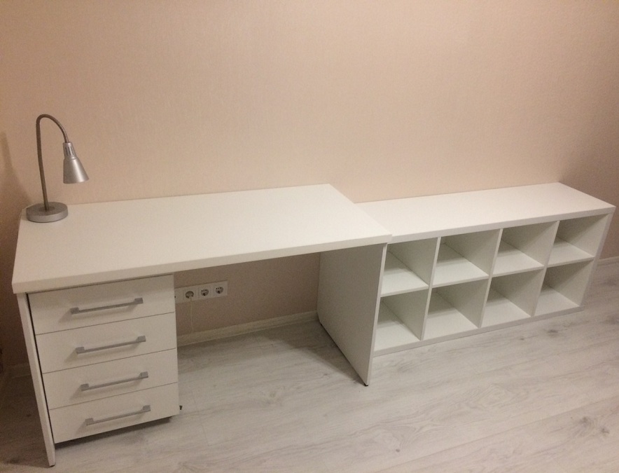 Комплектания: письменный стол, тумба, стеллаж