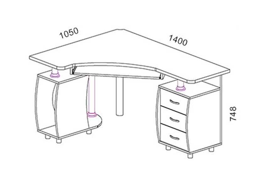 код 111025Компьютерный стол с тумбой, полками для системного блока и клавиатуры.