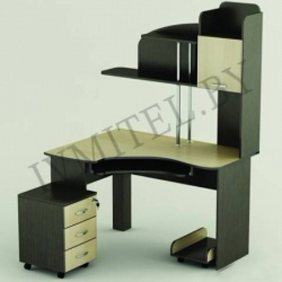 Функциональный стол – залог комфортной и плодотворной работы. Модель выполнена в сочетании черного и белого цвета. В комплект входит небольшая приставная тумба с тремя выдвижными ящиками. Предусмотрено место для системного блока и подставка для клавиатуры.