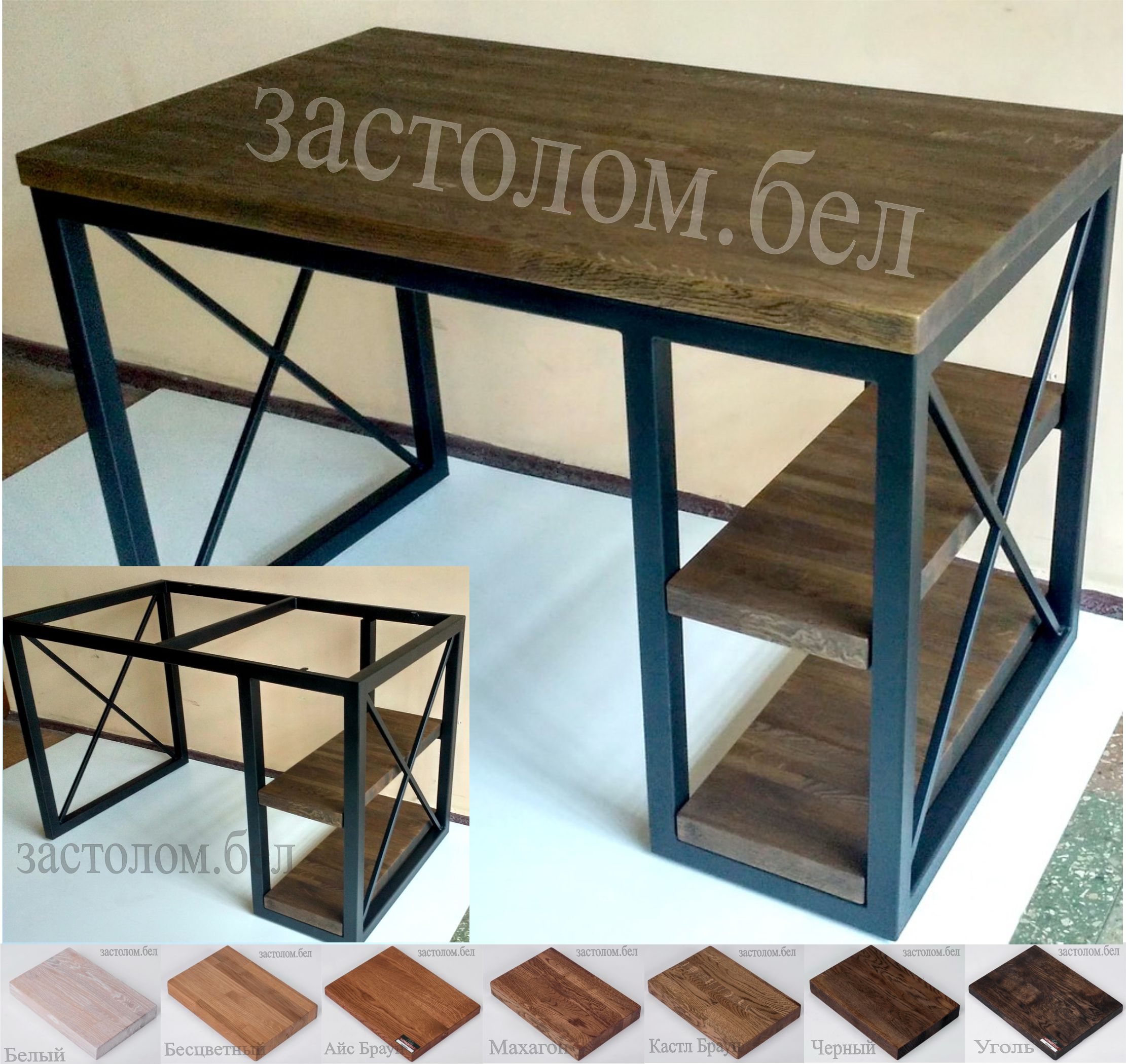Изготовим из массива дуба, ЛДСП или постформинга. Выбор цвета ножек и столешницы.
