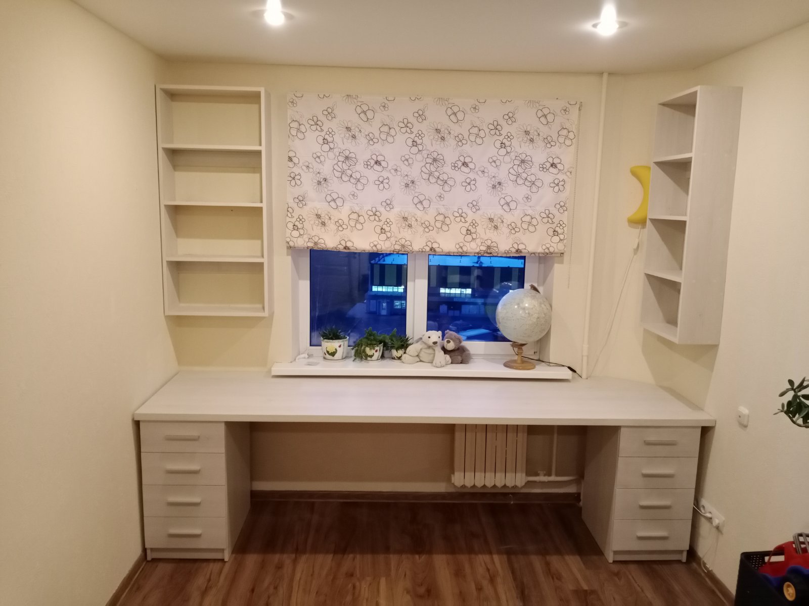 Две столешницы на разных уровнях. Выдвижные ящики. Угловая конструкция.