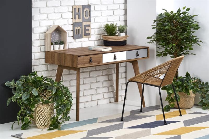 Компактный письменный стол с открытыми полками.