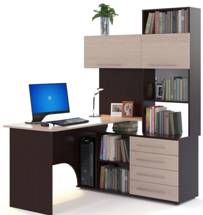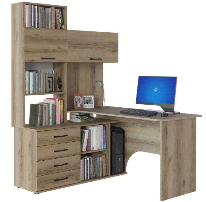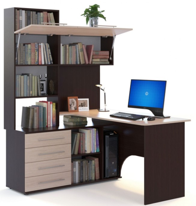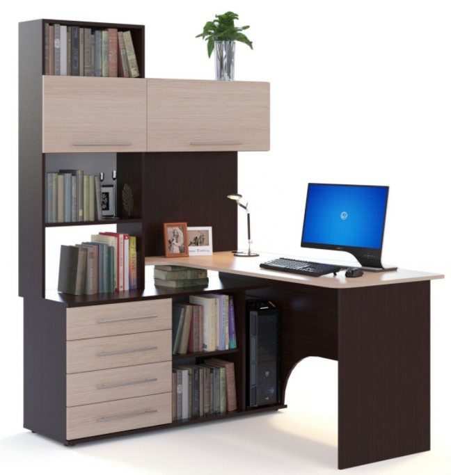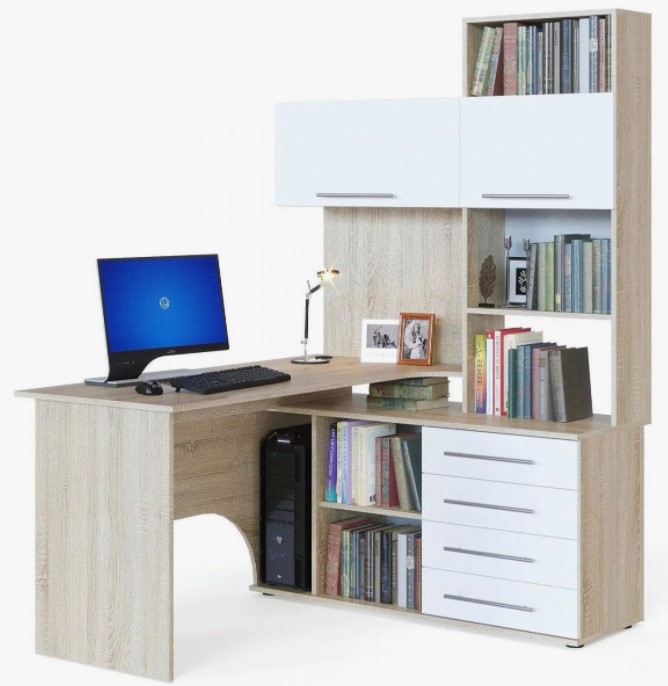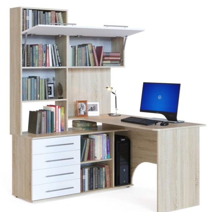 Компактный письменный стол с открытыми полками.