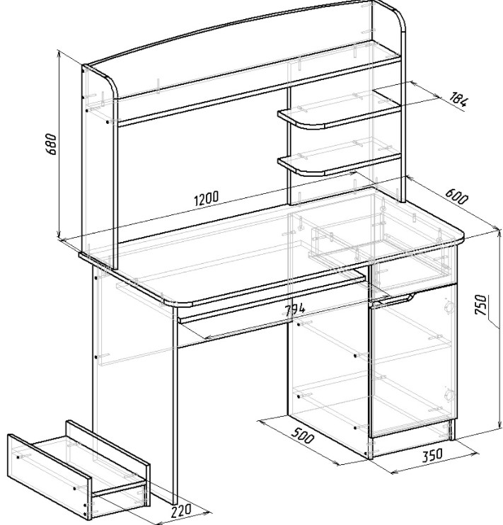 Поворотно-раскладной механизм. Материал: ЛДСП, стекло.