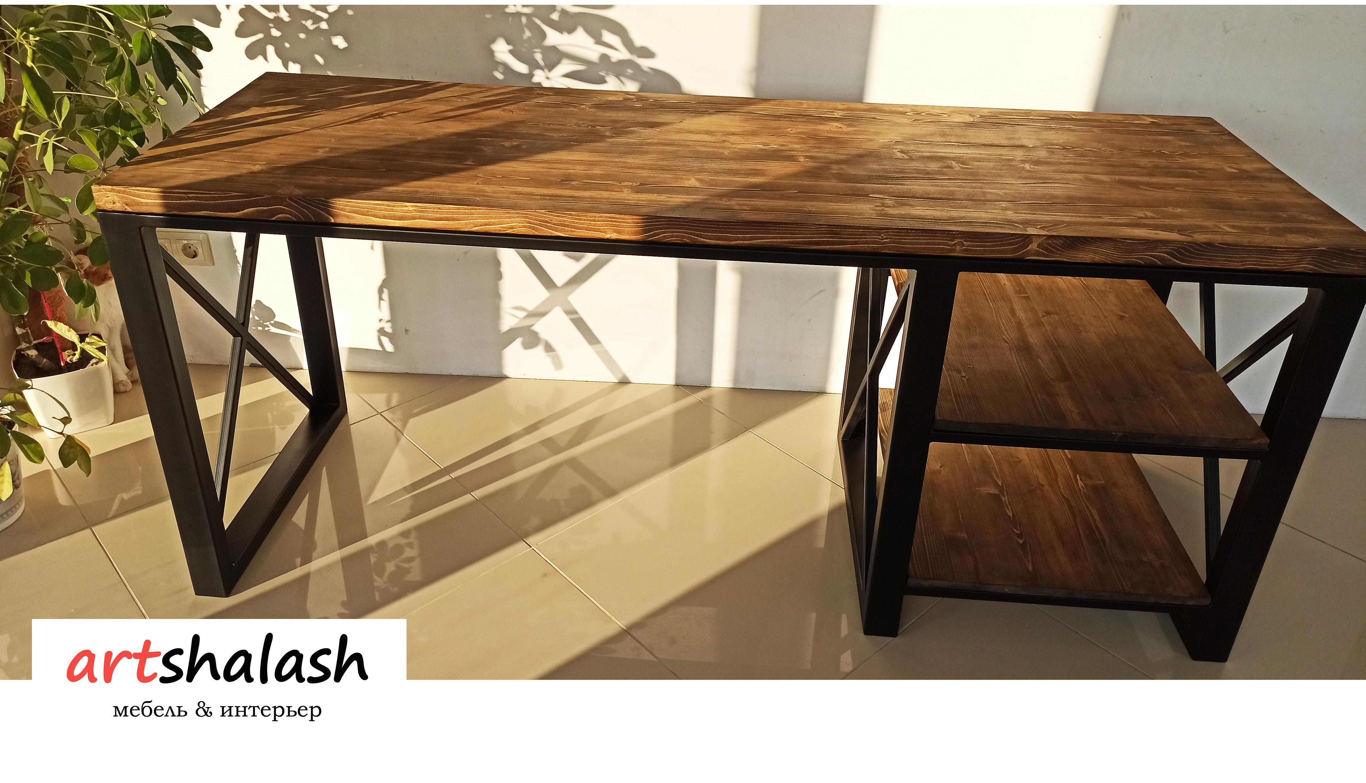 Столешница: дуб/сосна 40 мм, полки дуб 20мм/сосна 18 мм, покрытие - масло (цвет на выбор).