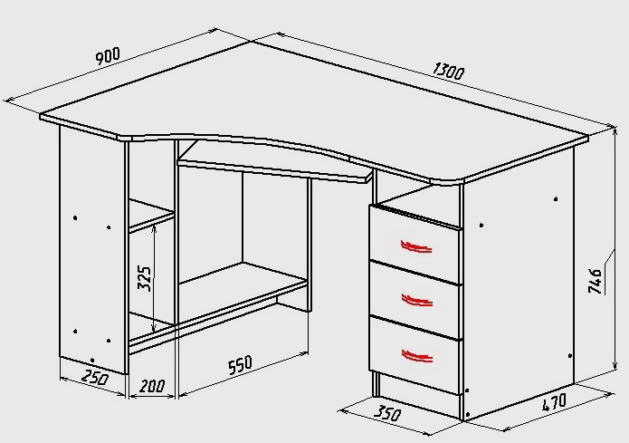 Прямоугольный стол. Тумба с тремя выдвижными ящиками.