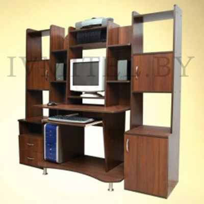 Компьютерный стол поражает своей функциональностью. Работать за таким столом будет одно удовольствие. Большое количество ящиков и полок позволит вам расположить все необходимые предметы. Модель исполнена в цвете орех.