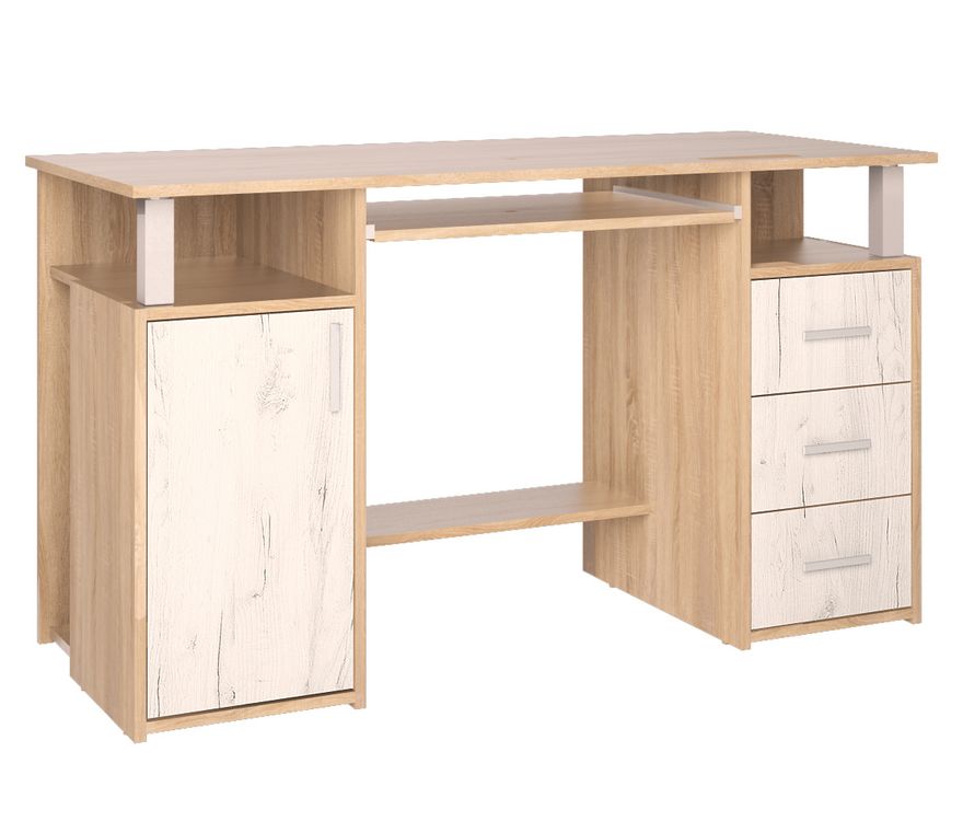 Стол письменный «Ингар 2/ДВ/ДВ» (дуб беленый/белый) 140 см