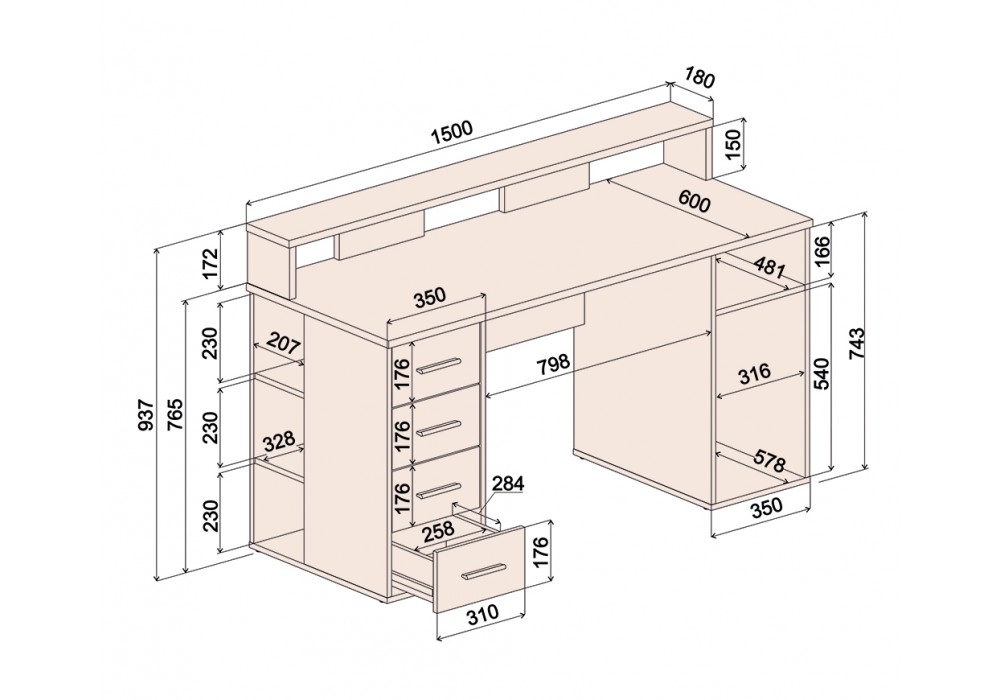 Габариты (ДхШхВ): 800х300х750 мм. Материал: металл, ЛДСП.