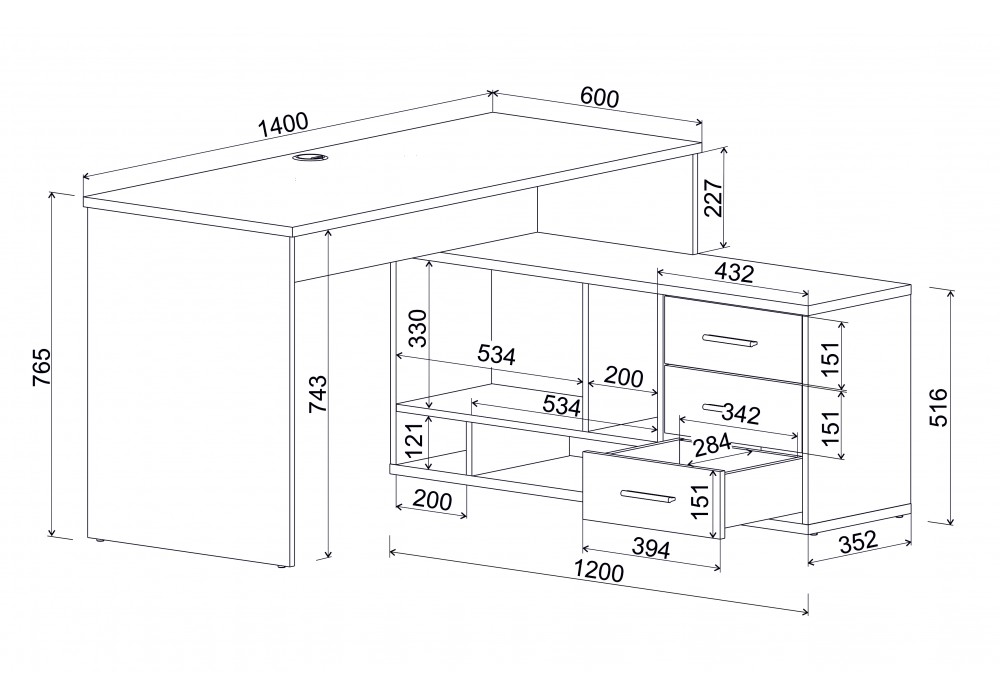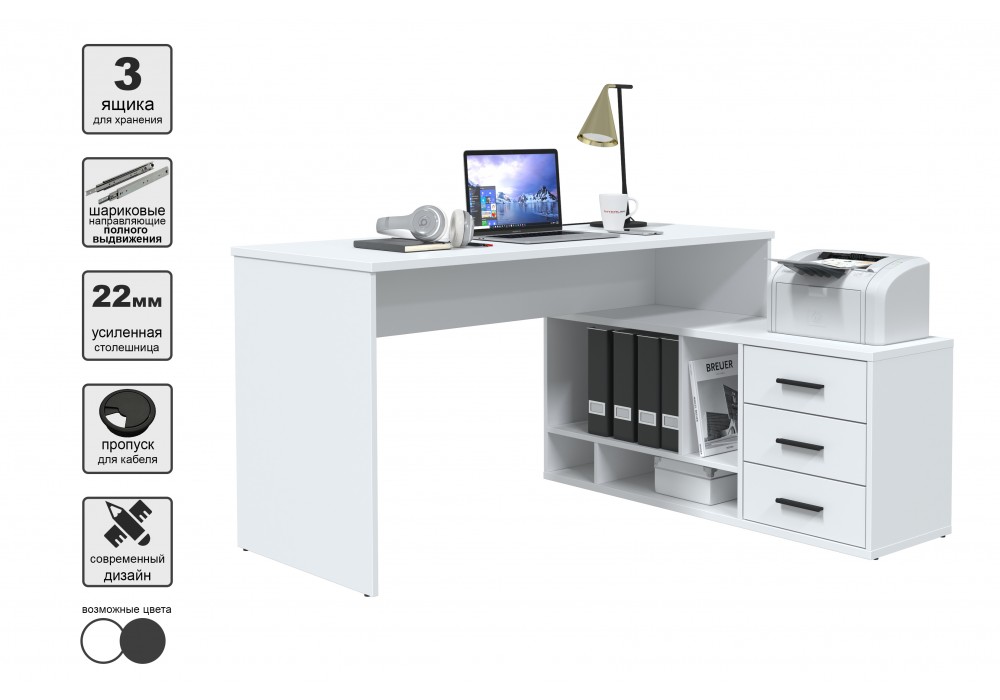 Стол компьютерный «Skill-5» (П) (белый) фабрика Интерлиния