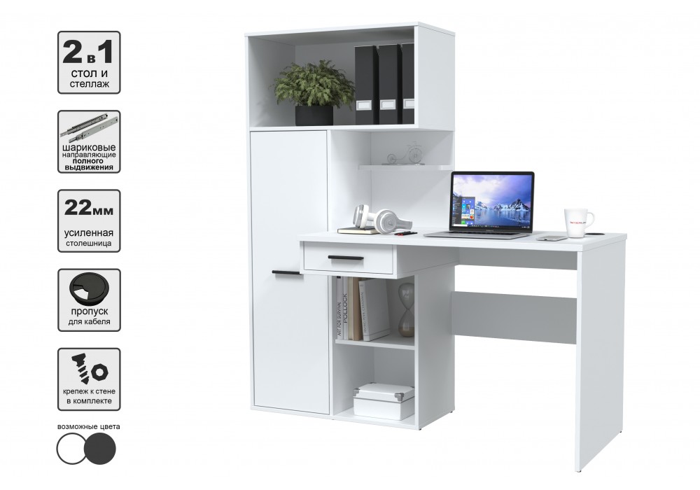 Функциональная рабочая зона с выдвижными ящиками. Подвесные полки не входят в цену.