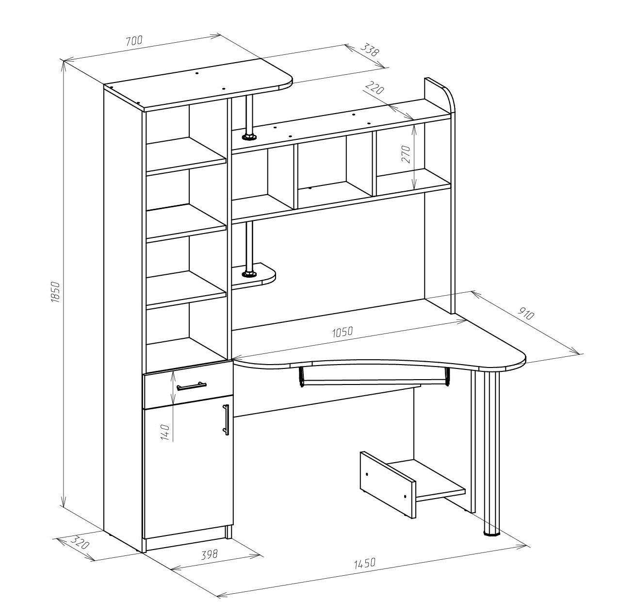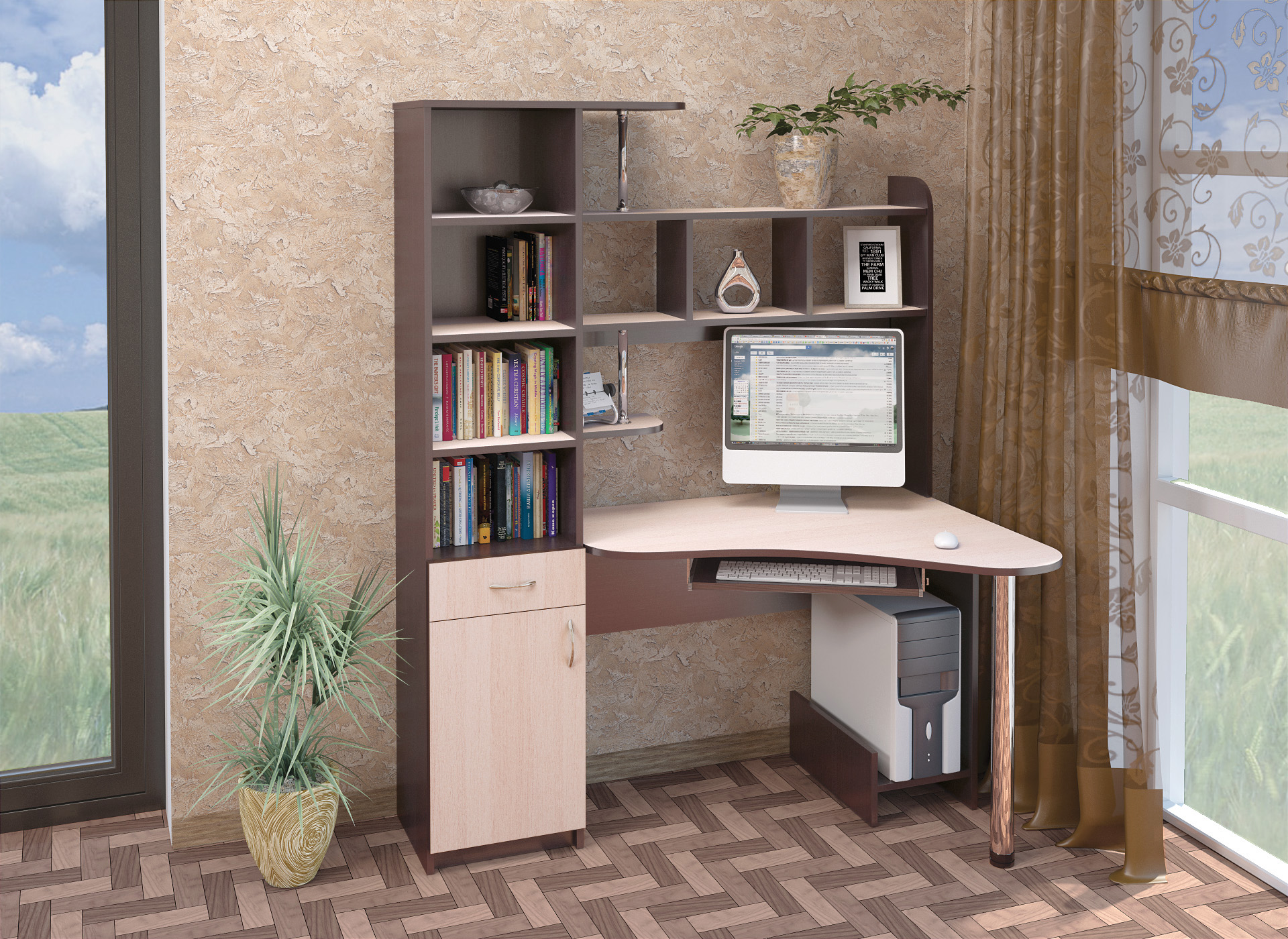 Стол компьютерный «Турин СТ-105» выполнен в угловой форме. Бежевая цветовая гамма, в которой он представлен, является универсальной и нейтральной в то же время, поэтому модель отлично подойдет к любому интерьеру комнаты. C левой стороны расположены выдвижной ящик и дверца. На полках можно расположить все необходимое для комфортной рабочей обстановки.