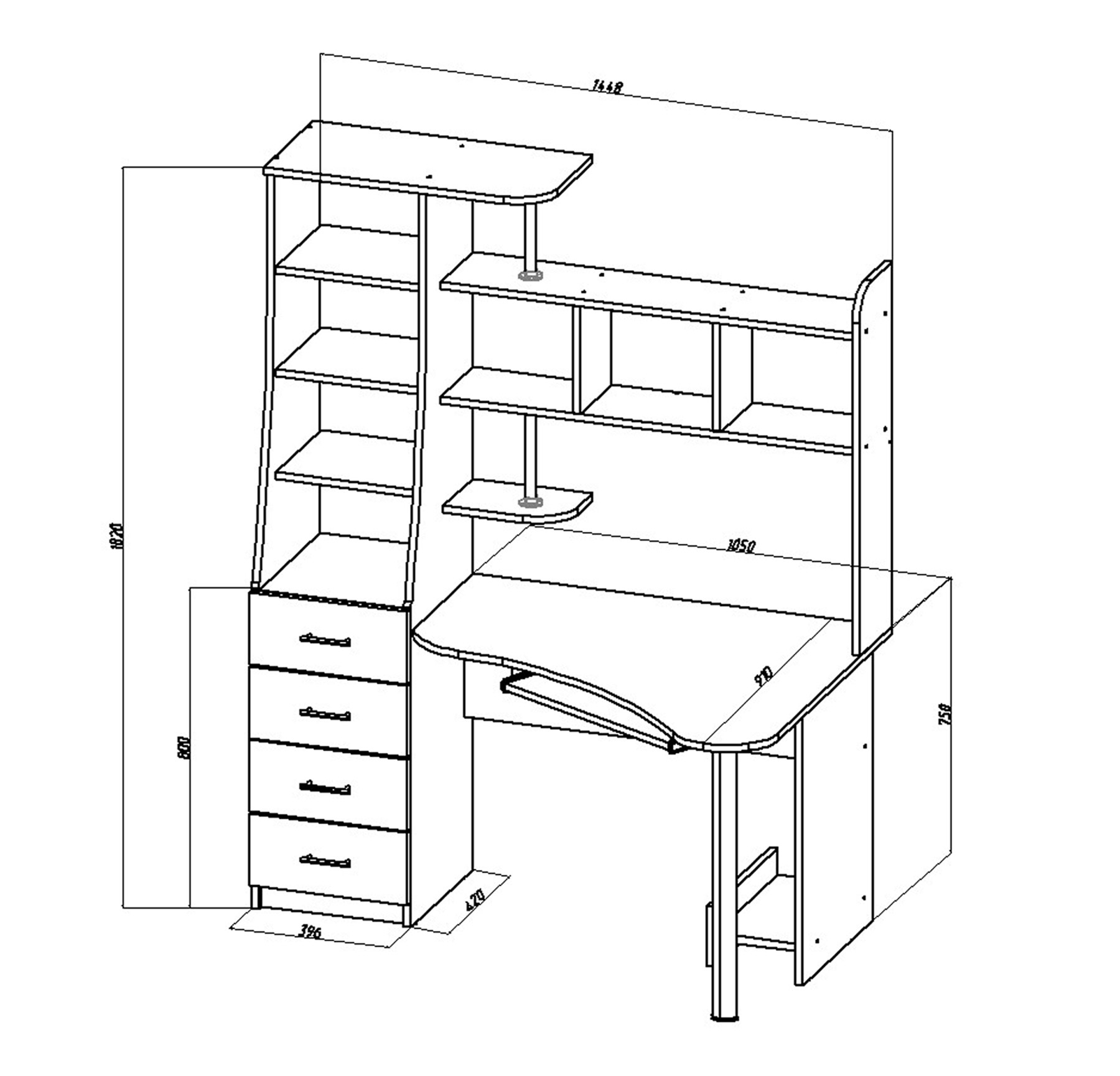 Габариты: 1200х600х750 мм. Материал: ЛДСП.