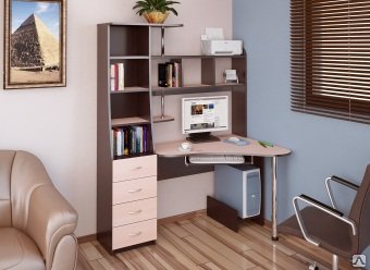 Получается удобное рабочее место, где можно комфортно работать за компьютером или работать с документами. Под столешницей располагается клавиатурная полка. Исполнение может быть левостороннее и правостороннее (определяется по углу столешницы).