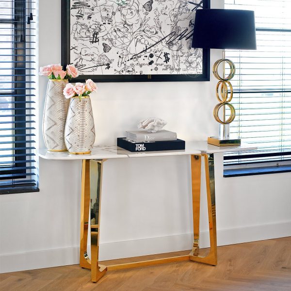 Выполнен из искусственного мрамора на подстолье из нержавеющей стали.