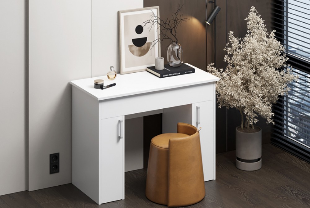 Практичный стол с выдвижными ящиками и надставкой на столешнице.