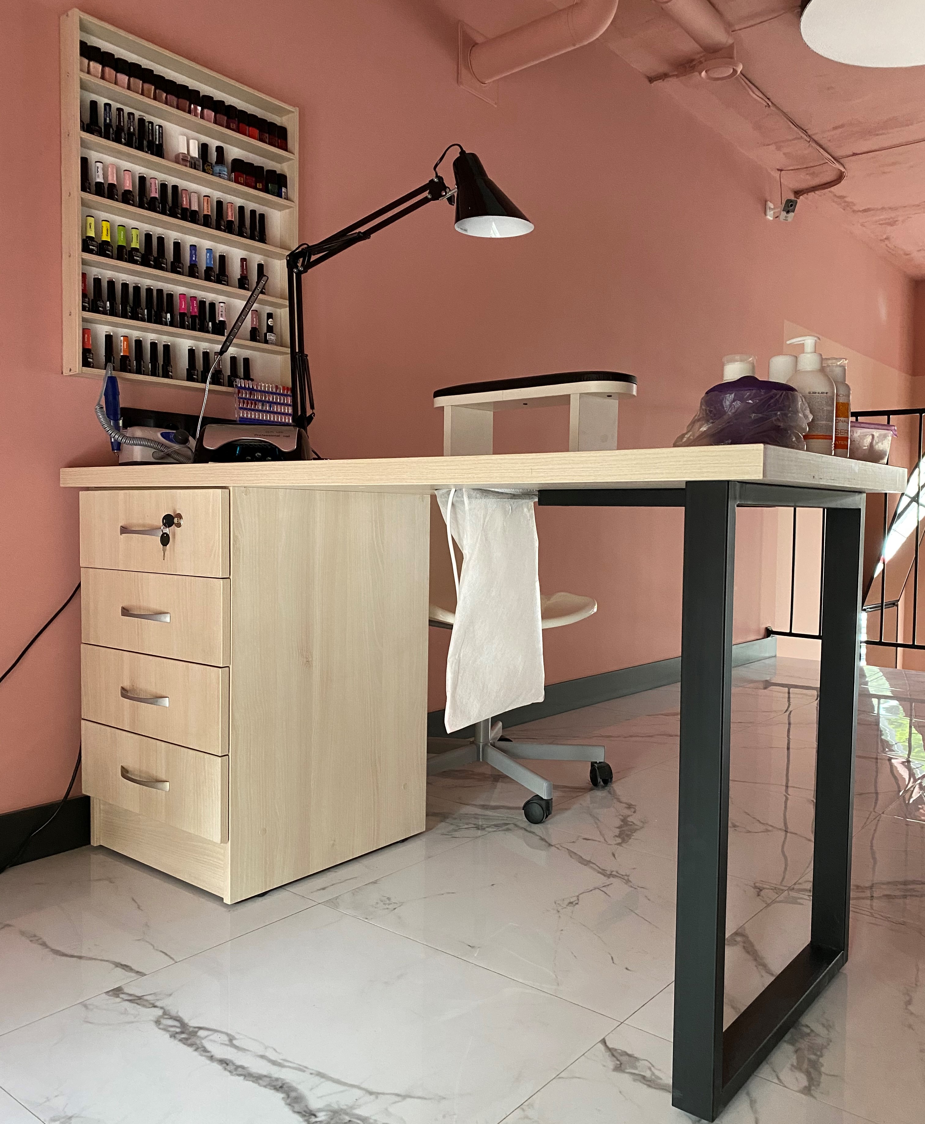 Мебель ихготовлена из ЛДСП, опора стола - труба профильная.